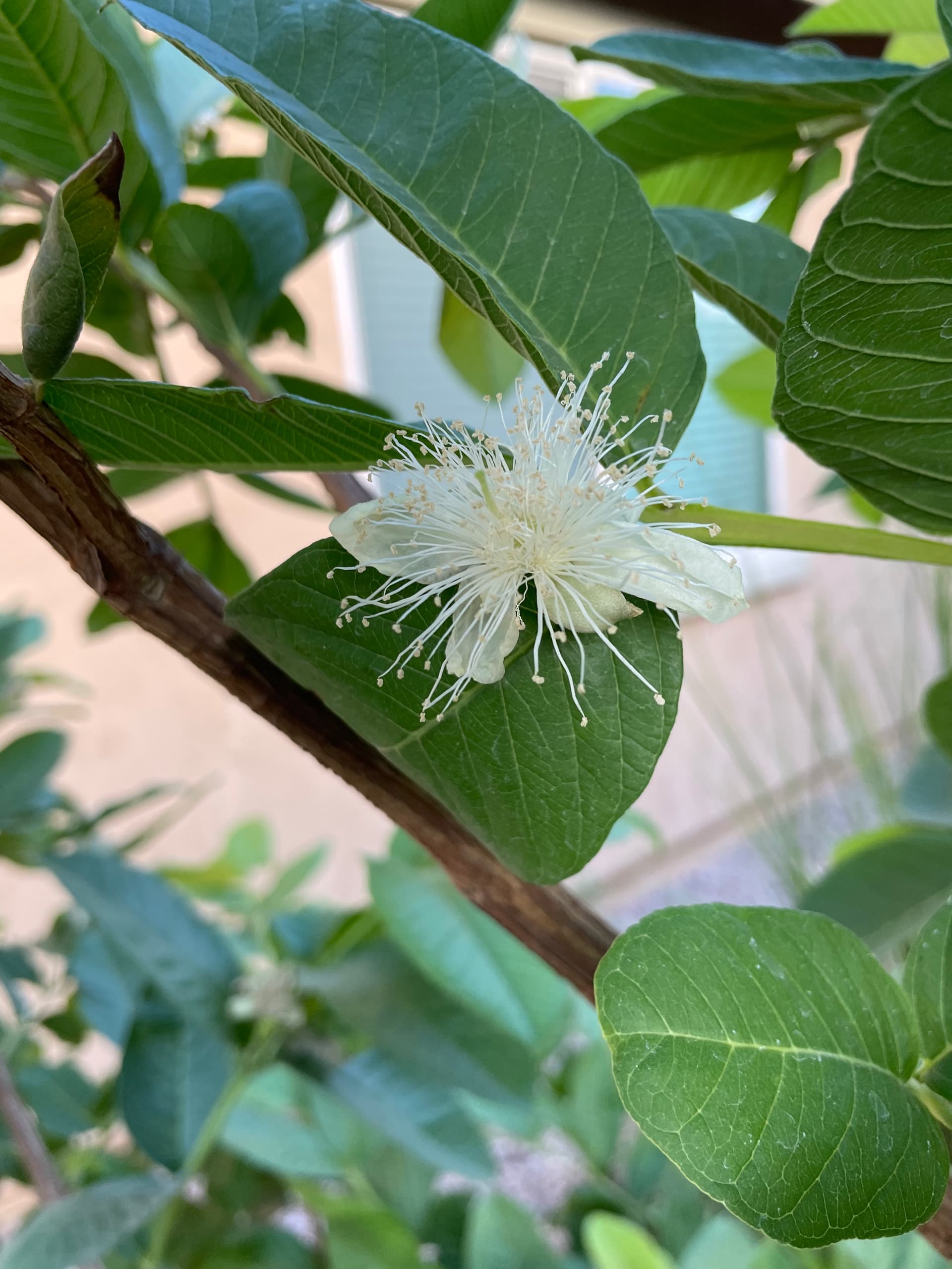 I am now the proud parent of a guava flower. It took 3 yr from when we planted the tree to it finally flowering! Helps when I remember to fertilize it and water it enough. Haha!