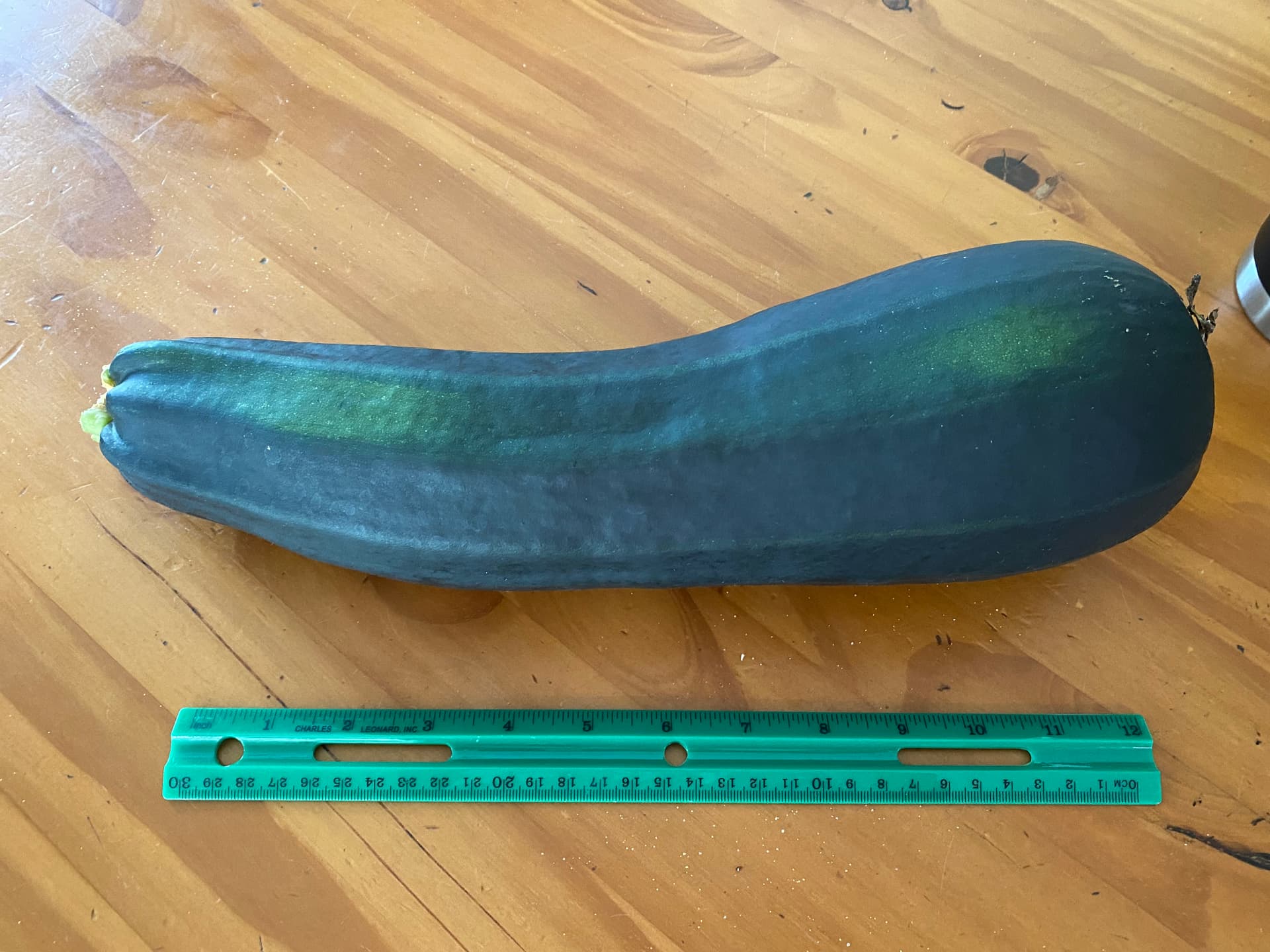 Our zucchini plants have been their best ever this year in terms of how much fruit they have produced. But my husband planted them a bit too close together in a box with a SunGold tomato plant that has also become quite unwieldy. As a result, he has missed a few of the zucchini, which enabled some to get too large.