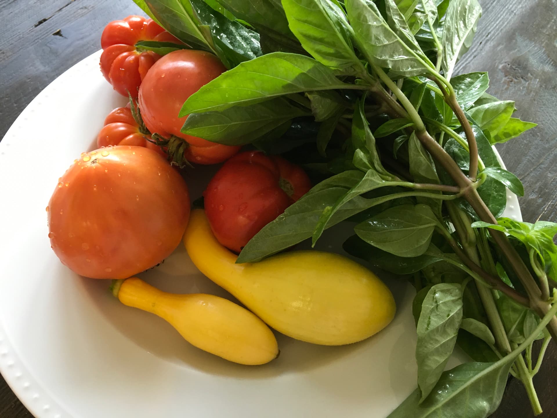 Just had our first home-grown meal: diced tomatoes with torn basil from the garden, mixed with minced garlic, olive oil, salt and pepper - let it sit on the counter until the flavors meld, then serve it over warm pasta. It was delicious, especially on this very hot day!