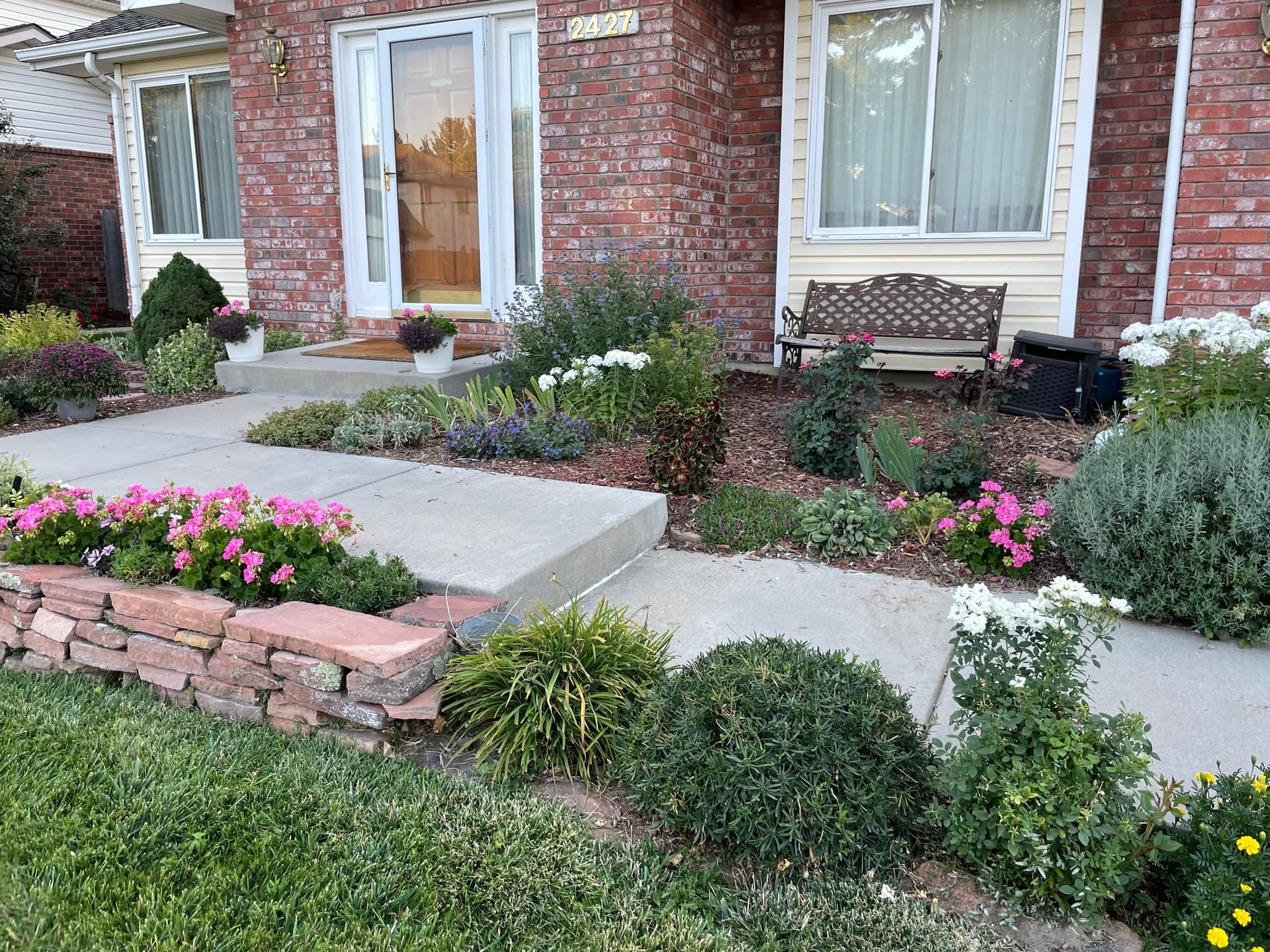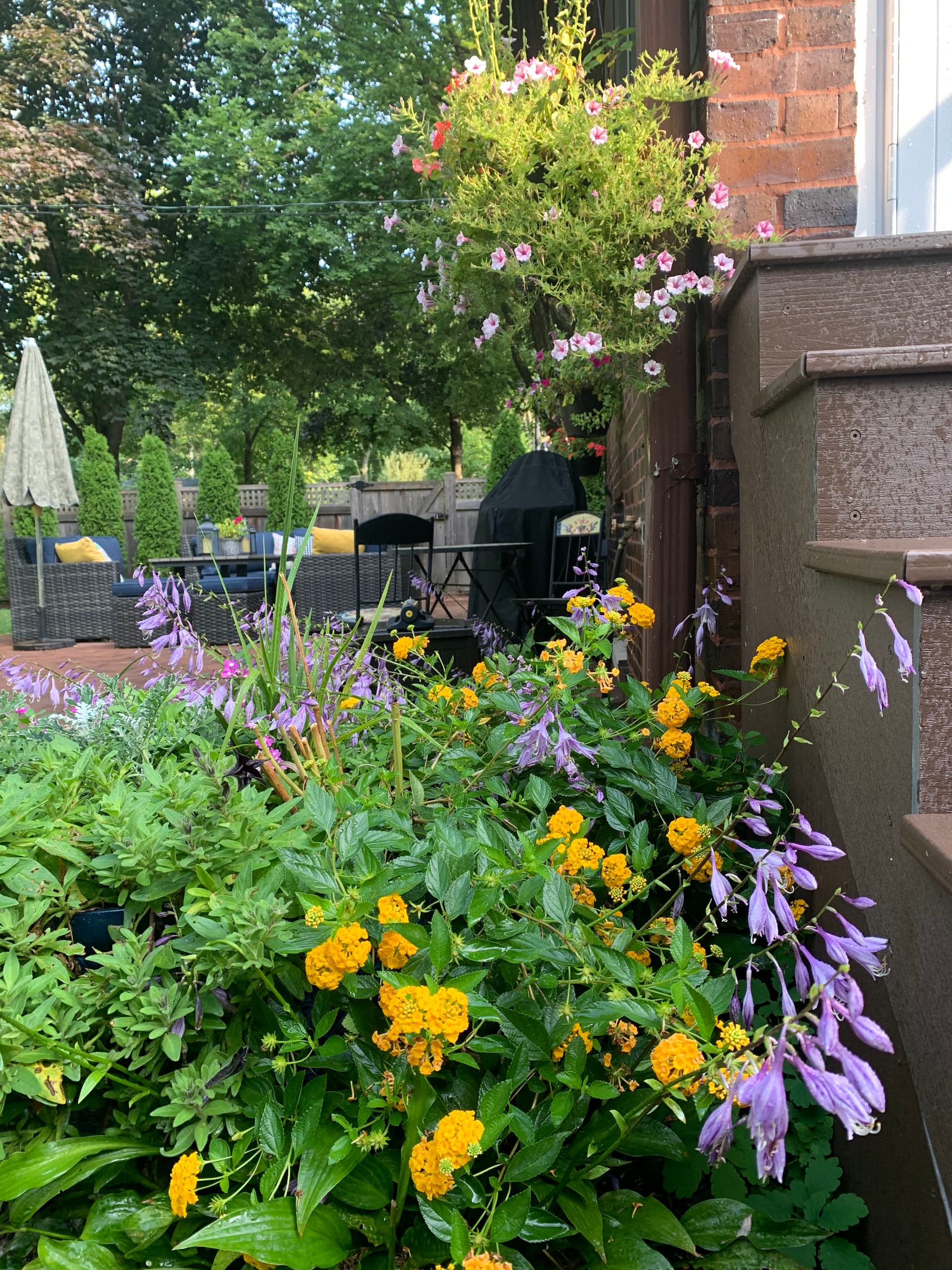 My summer annuals and perennials are going strong. The neighbor’s landscaper just did their fall change over. I wait until the summer stuff is naturally done and over.