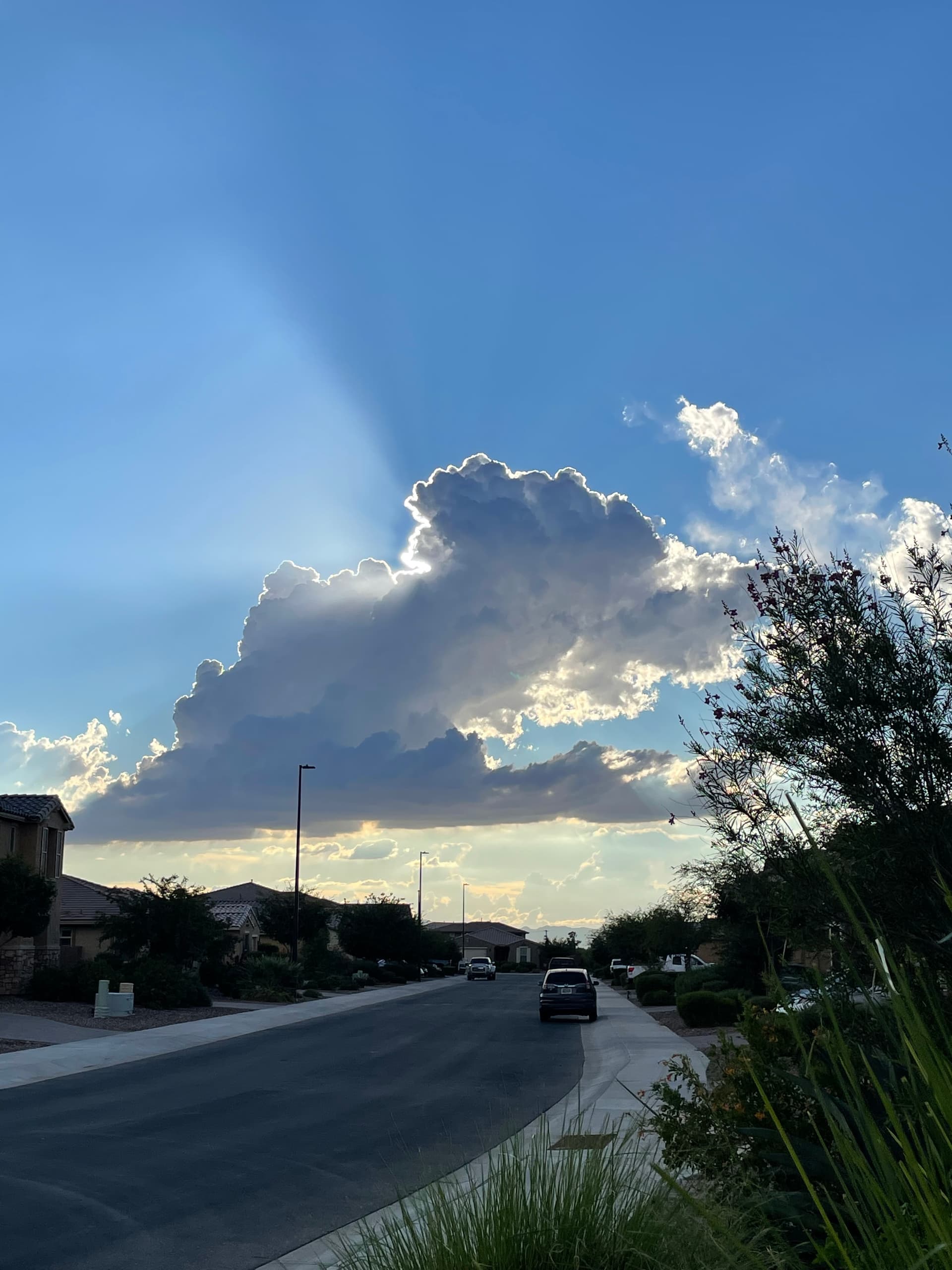 Here’s a recent picture looking down our street late in the day about a week ago.