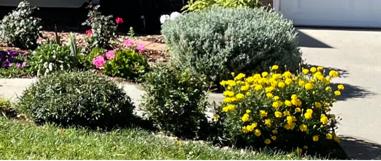 I had fantastic luck with Rocket marigolds this year (yellow at right). I planted 3 wee plants (from a 4 pack) and had to move one later as they grew. I’ve pulled them out now and am contemplating crocus bulbs for that space near driveway, so I’ll see them sprouting early next spring as I when I pull up the garage. But if I did so not sure if I could plant marigolds there again later in spring… would it make it too shady for crocus to survive for the next years? Other suggestions?