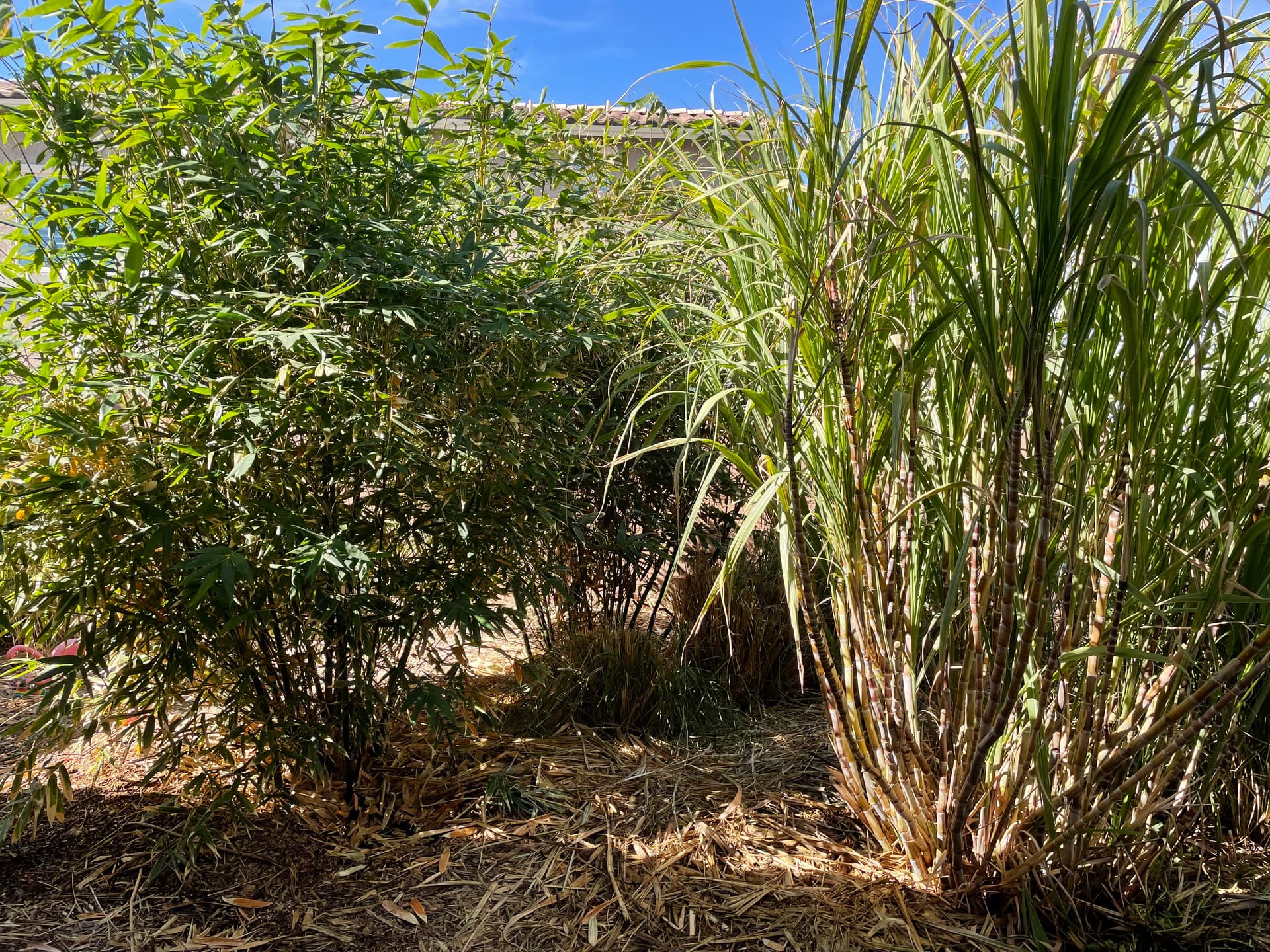 And after 2 1/2 years of waiting, the bamboo is now tall enough that I can’t see the 2 story house next door when you sit on the back patio. The sugar cane is doing well, too. Our next door neighbor has commented before several times about how much she enjoys looking out her windows at us and then asks prying questions about what we are doing.