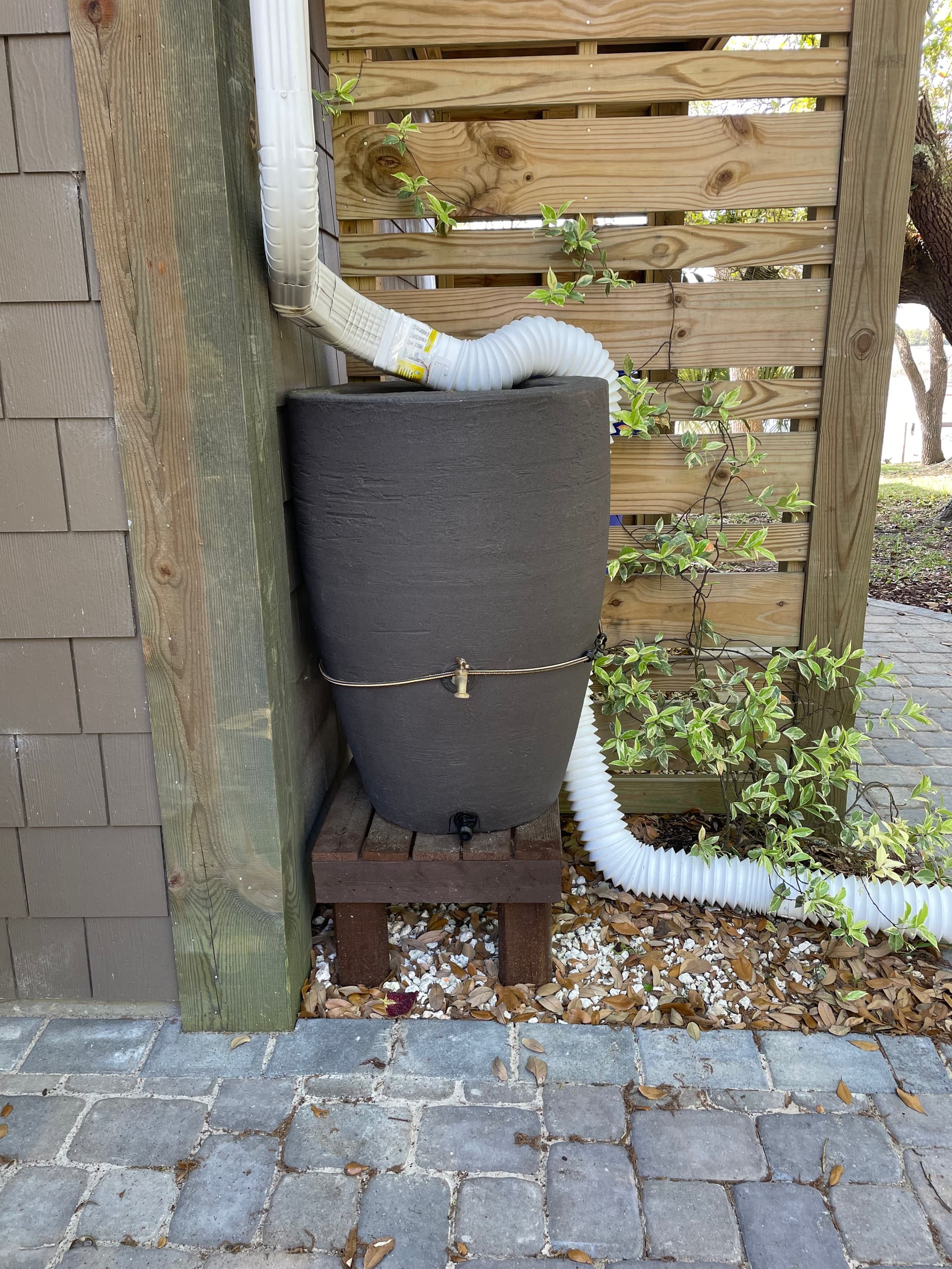 I can’t tell where your rainwater is going into the barrel - but clearly you are happy and using it!
