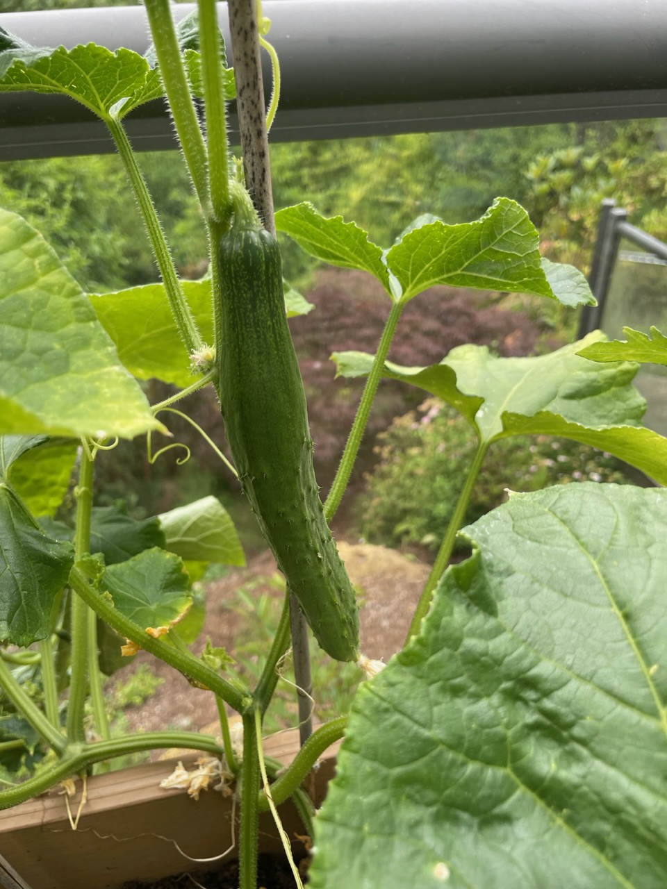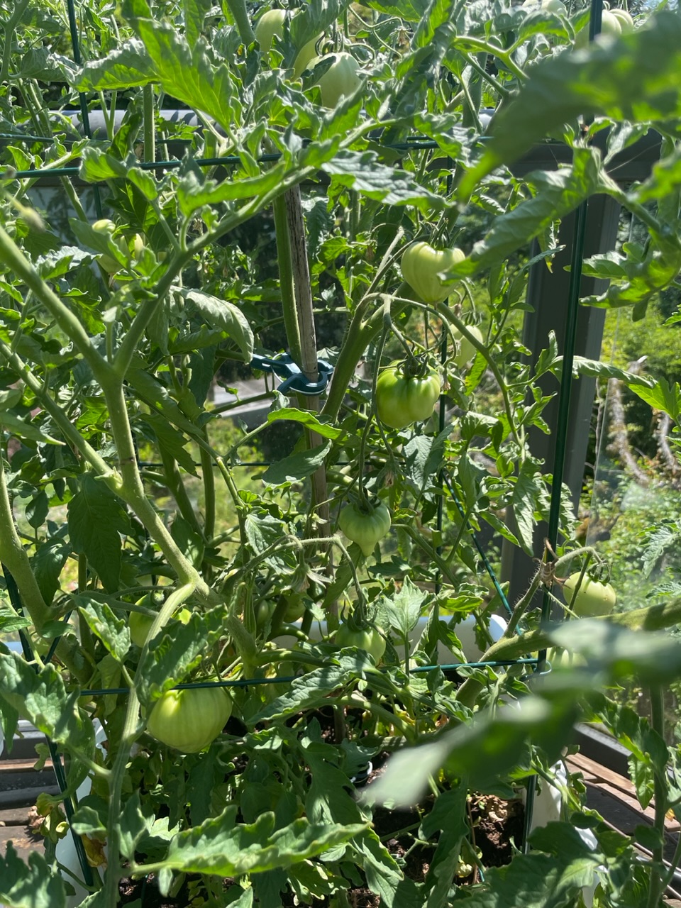 I’ve had two red tomatoes already! Seems early but this plant wanted to get going. I pinched blooms for a bit and then just let it go.