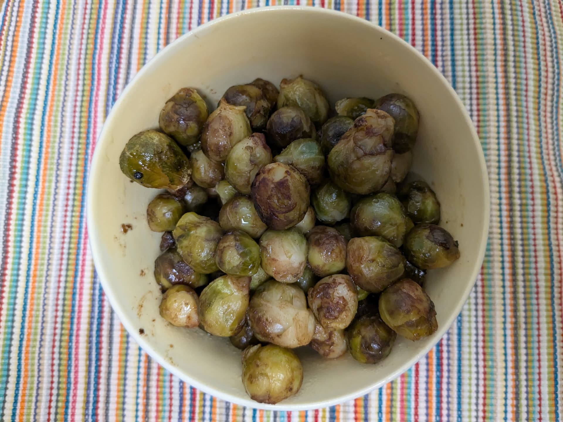For a different vibe, my go-to Brussels sprout recipe has equal-ish parts peanut butter, balsamic vinegar and soy sauce (emulsified together) plus olive oil.