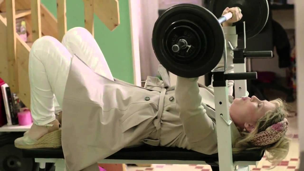 Family life: After interviewing church ladies who were not at a Tupperware party and offered her a gift, Candice goes home to a pile of laundry while her eldest kids help with dinner (in French).