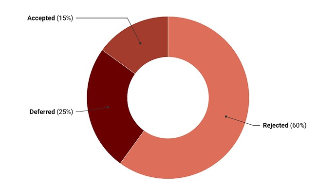 Some takeaways given your question. Last year they deferred 30% of 5,540 or 1,662 students vs this years 25% of 6,146 or 1,536. In other words in spite of the higher number of applications 126 fewer applicants are in consideration having been deferred.