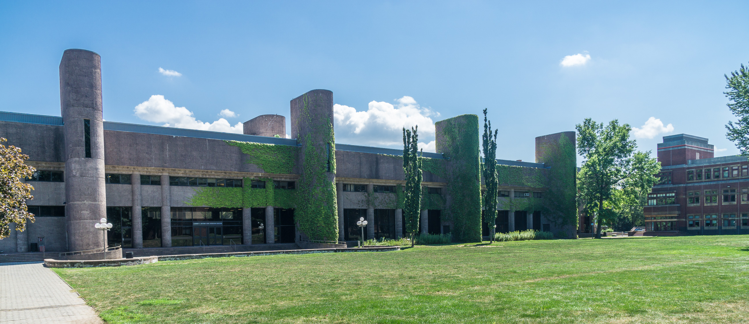 That’s very observant of you. Though they look like eleven separate buildings above ground, the Wesleyan Center for the Arts is connected by an almost internecine tunnel system which doubles as a foundation and literally “roots” them into the ground. The brainchild of design genius and Saarinen protege, the late Kevin Roche, one observer described the CFA as “the world’s biggest mushroom patch”.