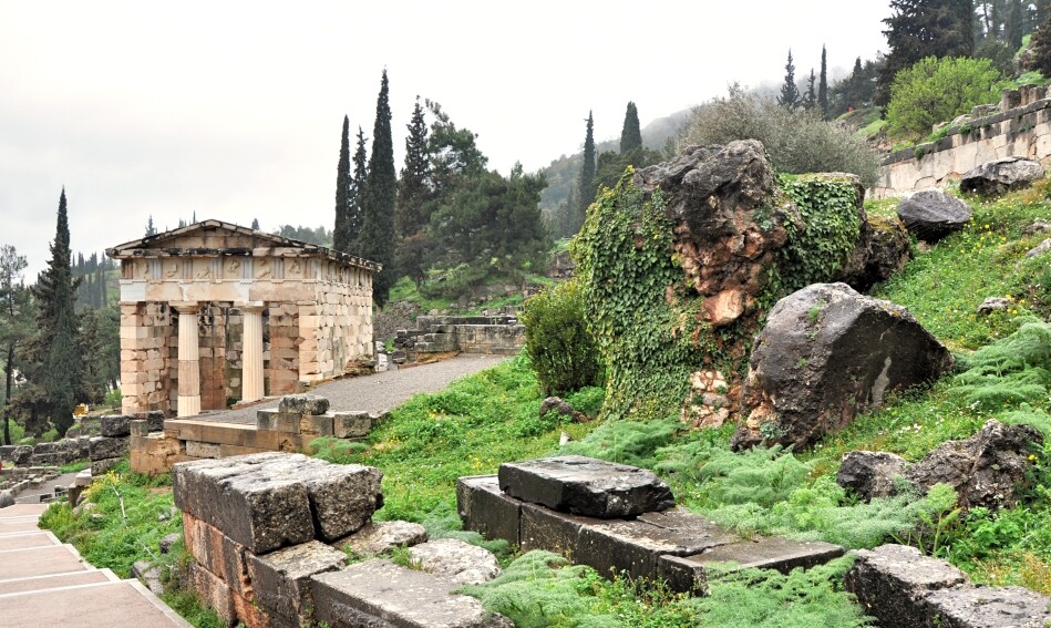 And compare it to the famous Treasury of the Athenians at Delphi: