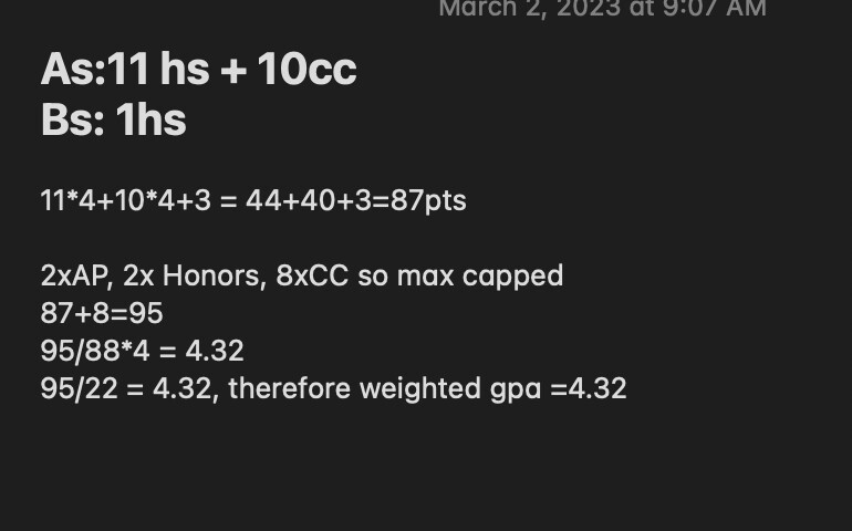 3.89UW, 4.05W??? (don’t even know how it was calc’d to be that low but I j checked CSA)