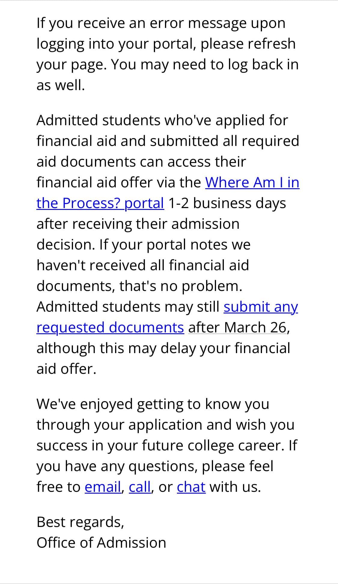 I think it was due to the wordings like âWish you success in your future college careerâ in the email, reddit users went a little paranoid. But this email is very generic, it can apply to those who got accepted or otherwise. So please donât create anxiety for yourself.