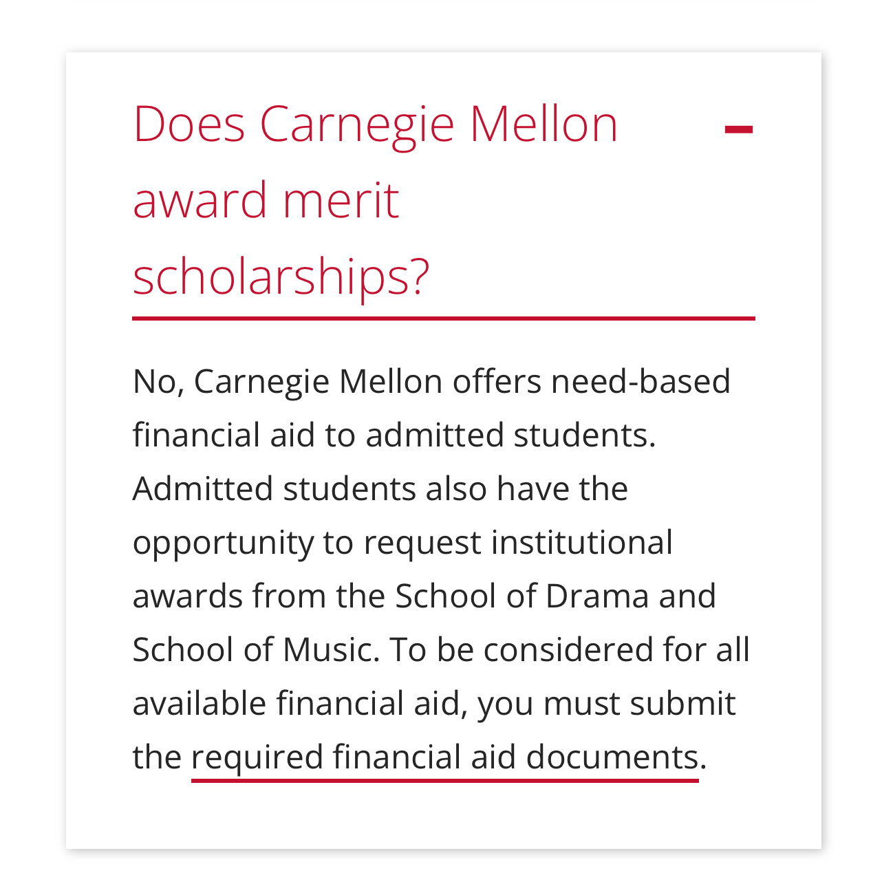 I can confirm that CMU only focuses on need-based aid. If you are full-pay you will receive a poorly worded letter saying that you can more than afford the $82,000 a year ticket price at CMU. It also comes along with a brochure explaining where you can get those funds from. A brochure which suggests you take out a second mortgage on your house will accompany this letter! We got this in 2019. I wish I would have kept it. It was terrible, terrible advice.