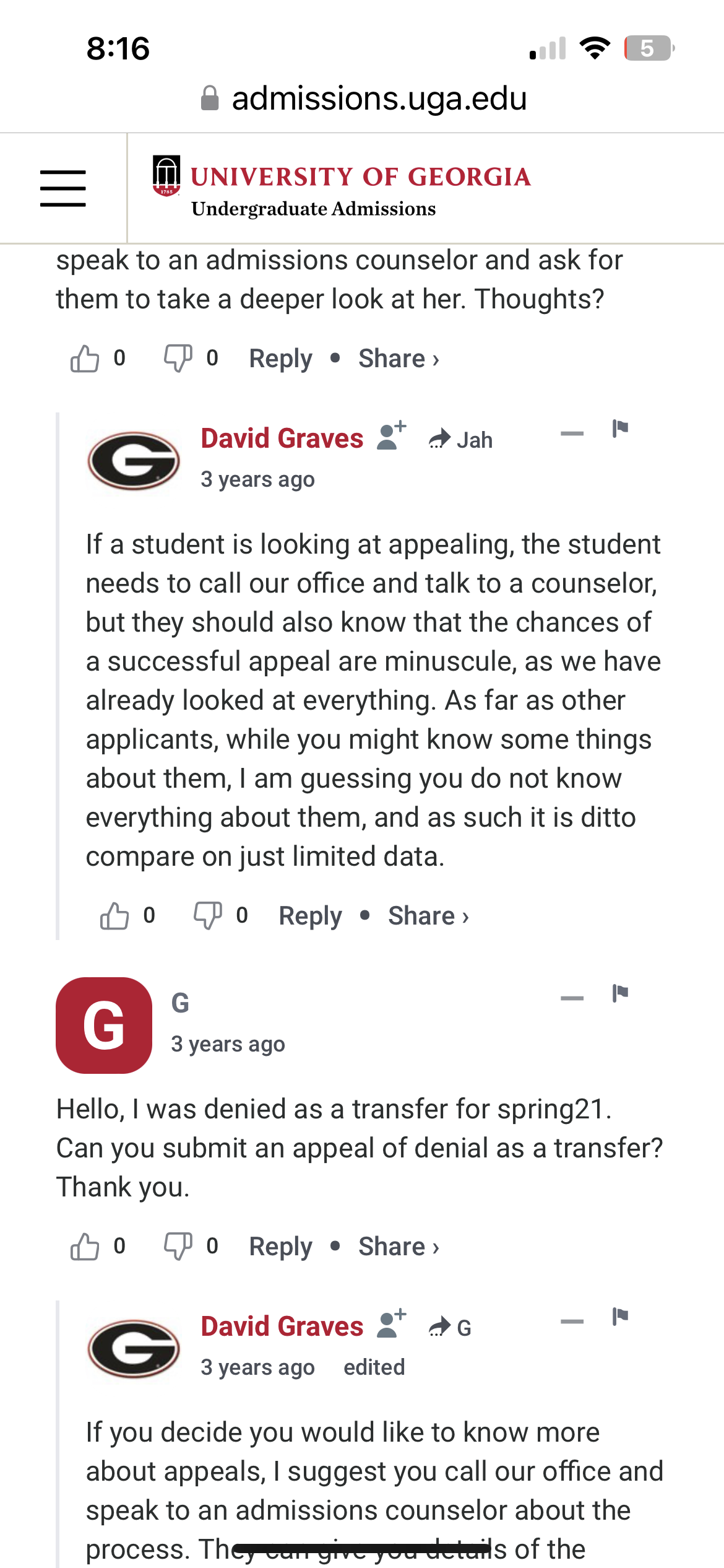 I think we will just let UGA go. We are trying so hard to move forward, I don’t want to get his hopes up. I thought maybe there was an official appeals process, I am reading this as, “you can call us, but don’t actually call us” lol.