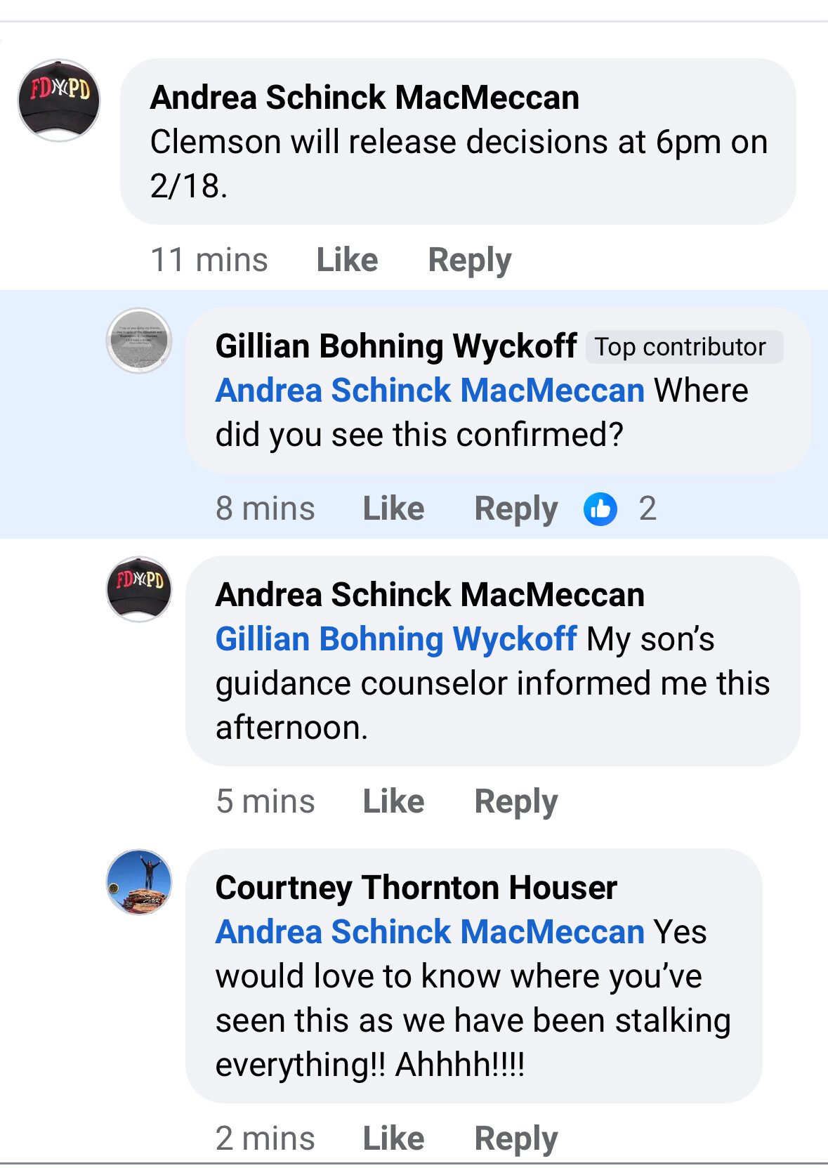 Before Clemson released their EA decisions they sent an email on that Monday afternoon saying decisions would be out at 6pm on Thursday. “Here’s what to expect on December 12th”. So I keep waiting for a similar email. With this coming Monday being a holiday, I’m assuming that Tuesday will be the earliest our kids hear anything at all from the University.