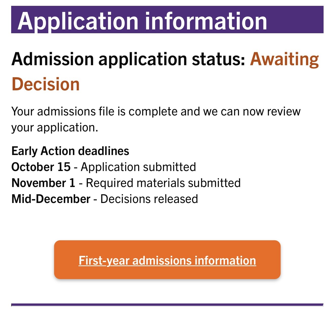 This is what it is showing in the deferred language. It could be this Friday. It was a Friday last year with no Instagram post prior. I will check the thread last year. I can see why we got the email for EA that explained “what’s next” mainly bc so many were going to be deferred. From here there isn’t really a what’s next. It’s denied or WL. I could see it going either way.