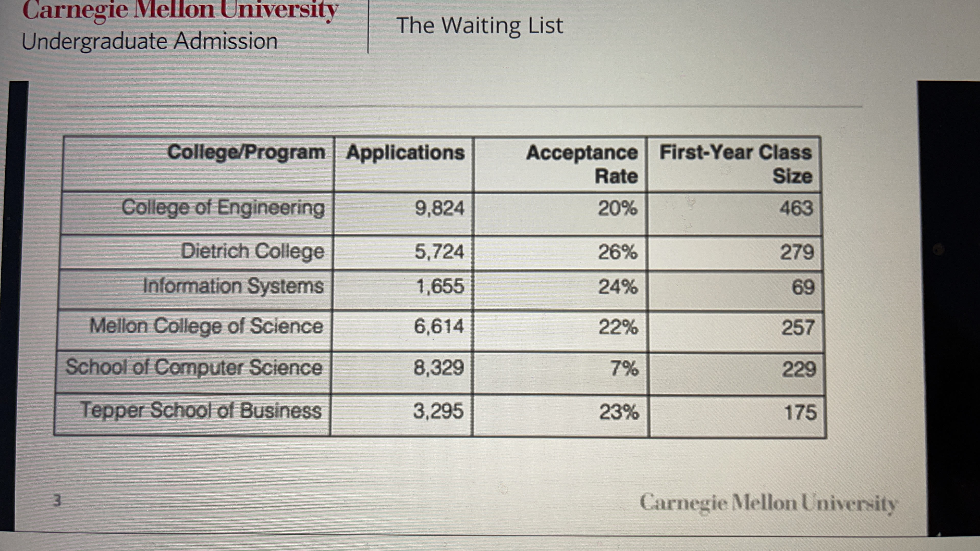 And one more thing…I think CMU could maybe be a little clearer in their decision letters. I see a crazy number of kids on Reddit A2C declaring “I got Priority Waitlisted!!” There seems to be a lot of misunderstanding out there.
