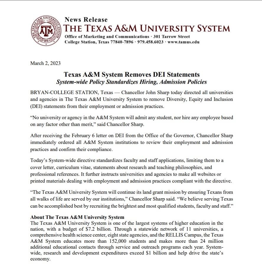 Oh, and to answer @AmyIzzy 's question above - I do think these anti-DEI moves will eventually impact scholarships at state schools in Florida and Texas. There is already a lawsuit in Texas against like 6 medical schools (being filed by America First Legal, the brain child of former Trump employee Steve Miller) for, as they claim, illegally admitting students based on race. So, it is only natural that next they will come after any little scholarship money that goes to under-represented minorities.