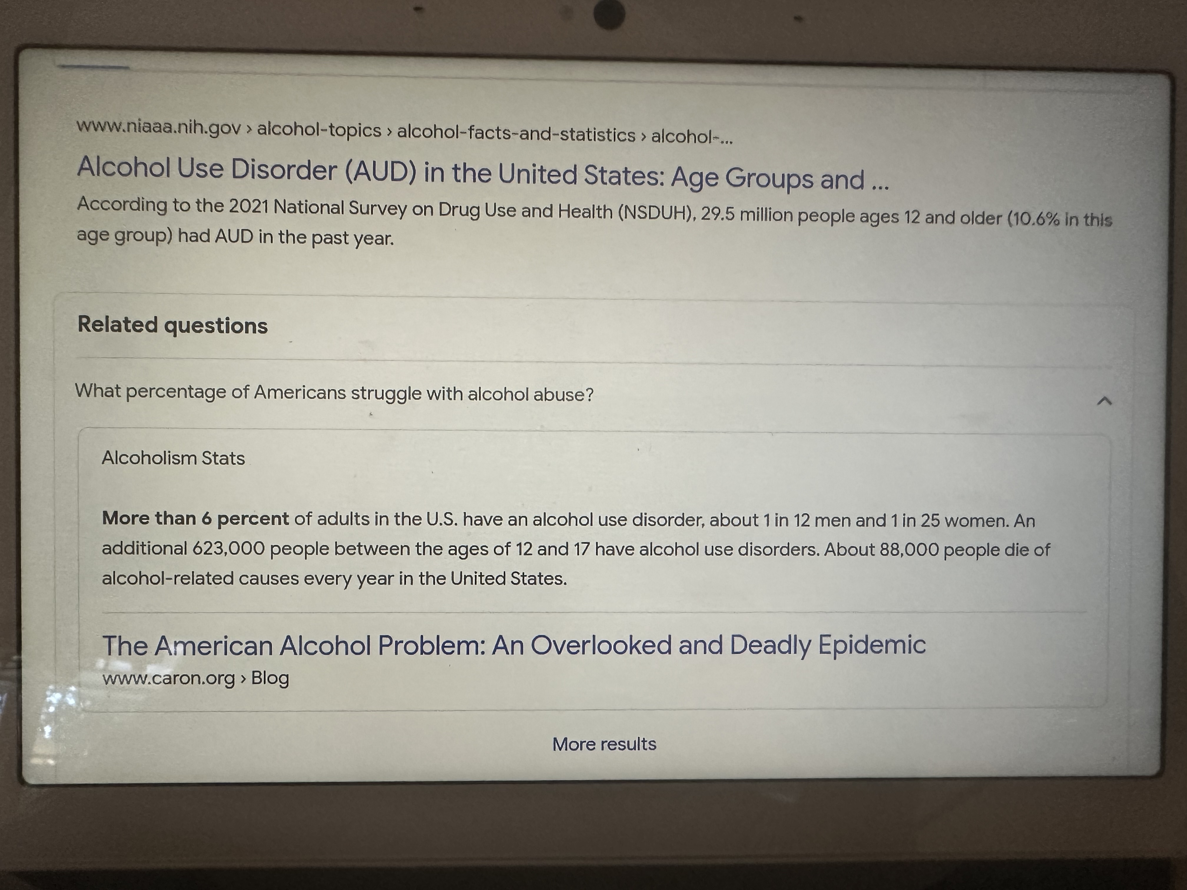 And a quick google search said that 6% of the US population has an alcohol abuse problem.