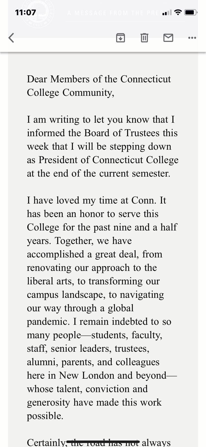 My kiddo is a current freshman & absolutely loving the school. Adores the profs ( regularly has coffee with a couple of them). Profs are always available. They’ve been exceptionally helpful wirh my kids accommodations (academic & otherwise). The kids only boycotted a week of classes (although the protests ran a few weeks). And profs were accomodating for students who both did & didnt want to attend classes. I think this change will be healthy for the school as demonstrated bybthe faculty agreeing with the students. My kid couldn’t be happier that she chose Conn (Over Vassar, Trinity, F&M, Haverford).
