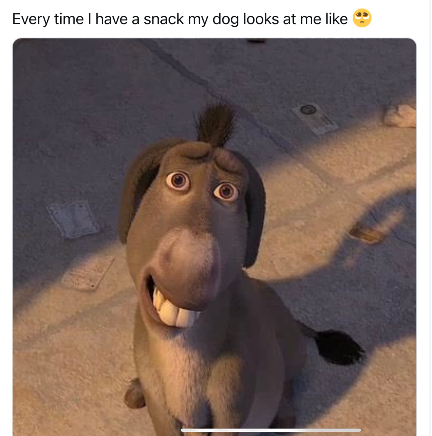 Some dog humor. My husband, who really isn’t even an animal lover, insisted I take this photo of my goofy boy because he looks so much like the meme! And yes, I was offering him a snack!