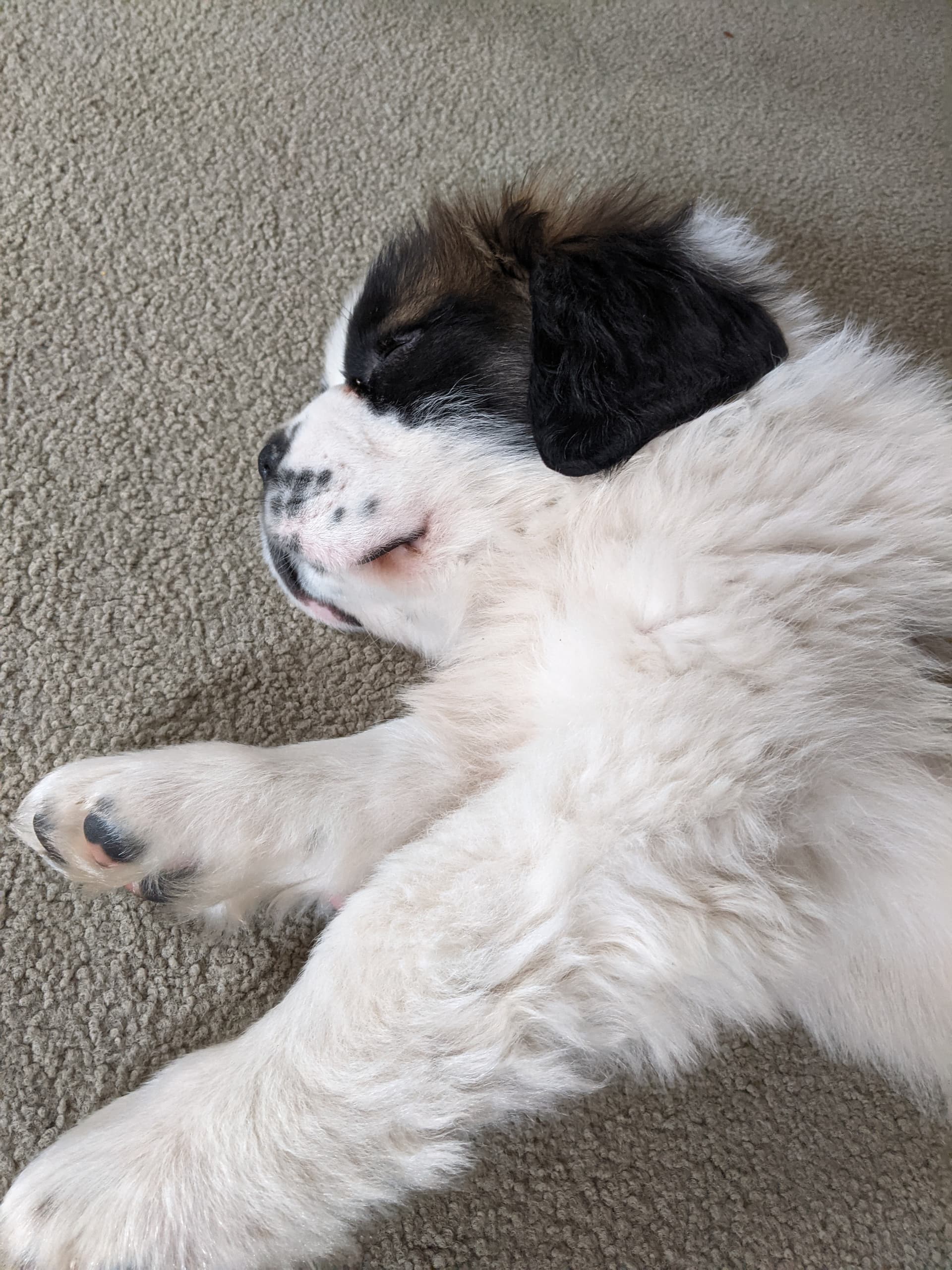 Applied to a few rescue/adoption sites and kept just missing out on “the one” that sounded like a good fit. Looked at several puppies of various ilk over the last few weeks, and today brought home THE ONE (I knew within 1 second, and yes, another Saint Bernard). He is 10 weeks old and asleep on my foot as I write this.
