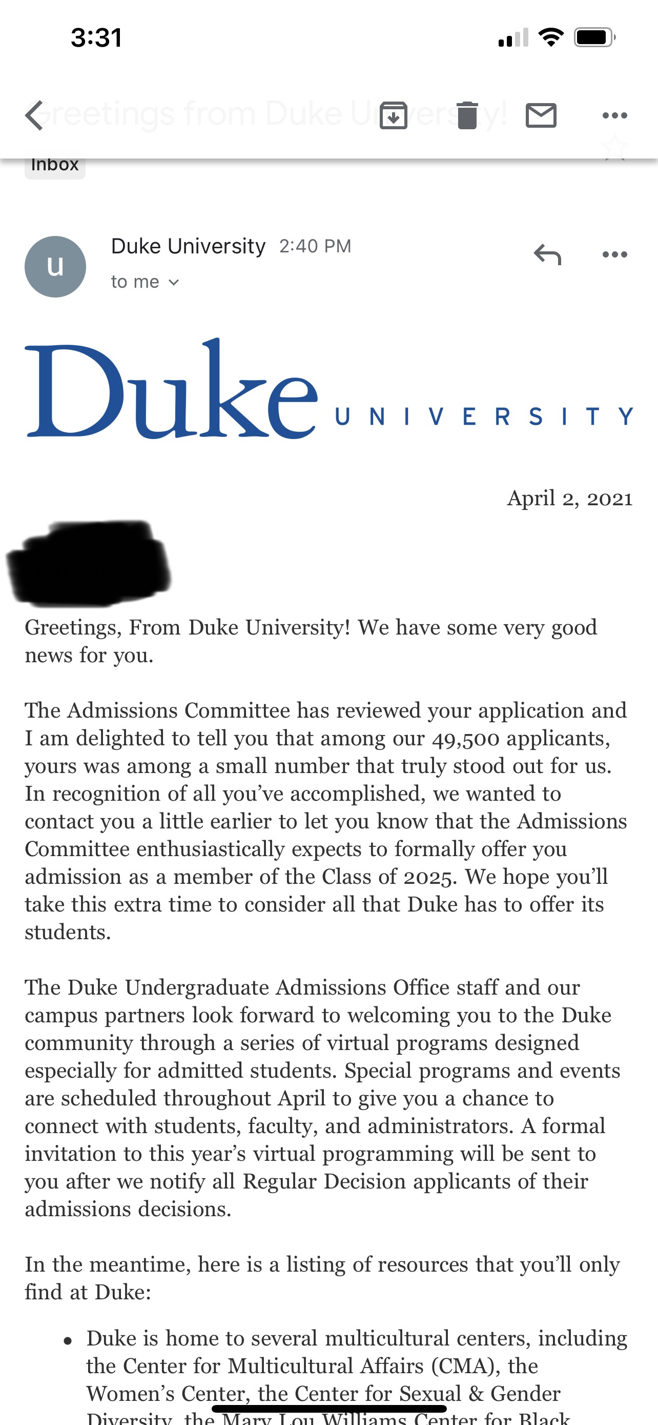 Congrats likely letter people! I still haven’t received the confirmation email. Should I be worried lol.