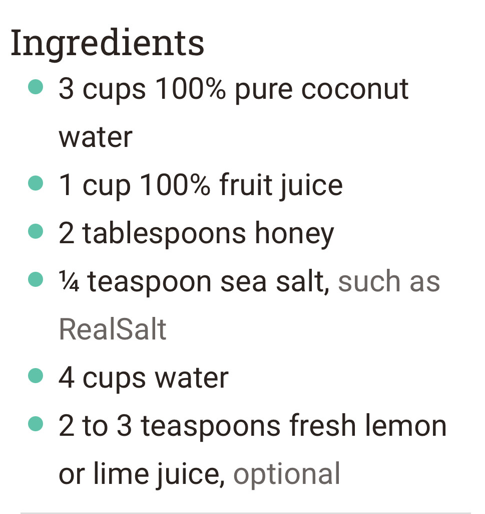 Here is a homemade “Gatorade” recipe similar to what I’ve used in the past.