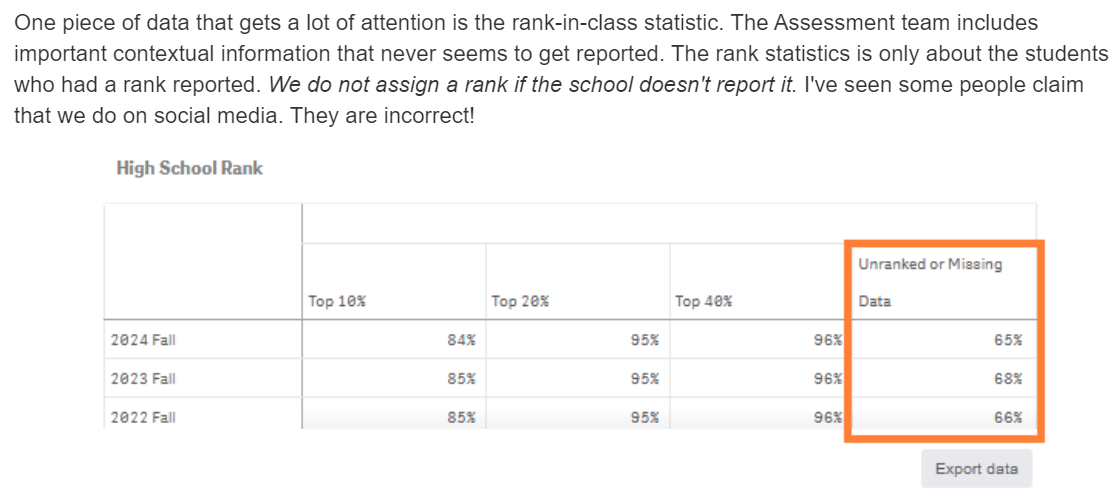 That is not what I meant. They use the school profile for context. A 4.2 could be valedictorian or middle of the class. Not something to be discerned from a GPA alone. She used to have multiple tweets that showed various school profiles and why they were important but looks like she’s deleted all of them.