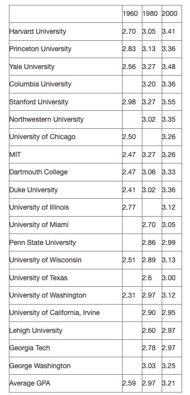 Sure, but this was just as true in the 1990s when I was in college, and the grades were less inflated then. The chart of Yale GPAs only goes back to 2010, but the same linear pattern goes back to at least the '80s.