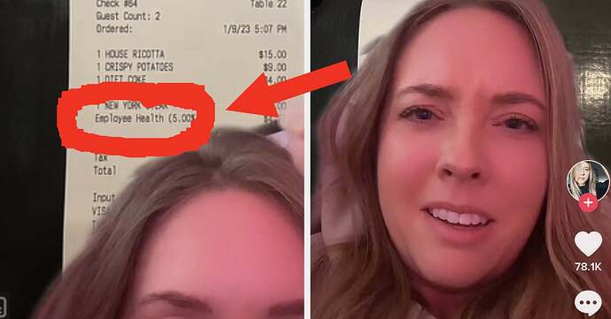 A patron at a restaurant noticed an Employee HEALTHCARE charge on their restaurant bill.
