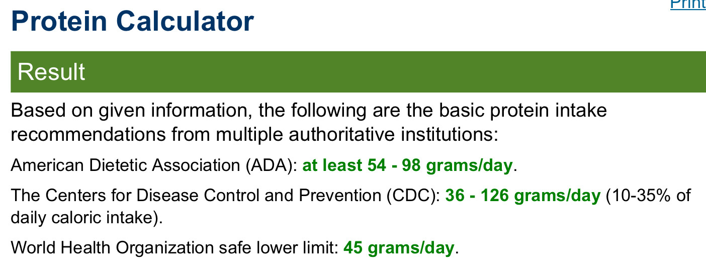 I’d be interested to know what formula myfitnesspal uses. In MyNetDiary, target for Protein is 60g (120lb, 1600 maintenance calories target) …… or more based on exercise entries.