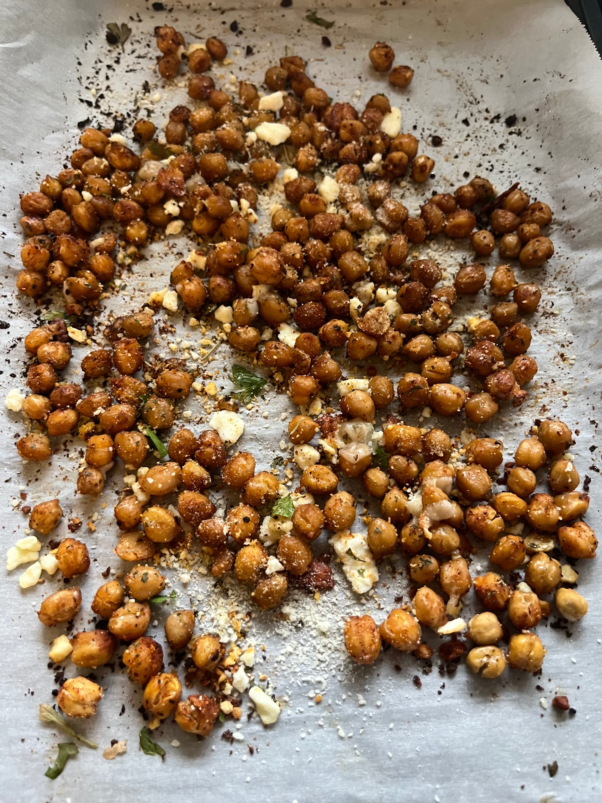No matter, enjoying this healthy snack right now. Roasted spiced chickpeas.