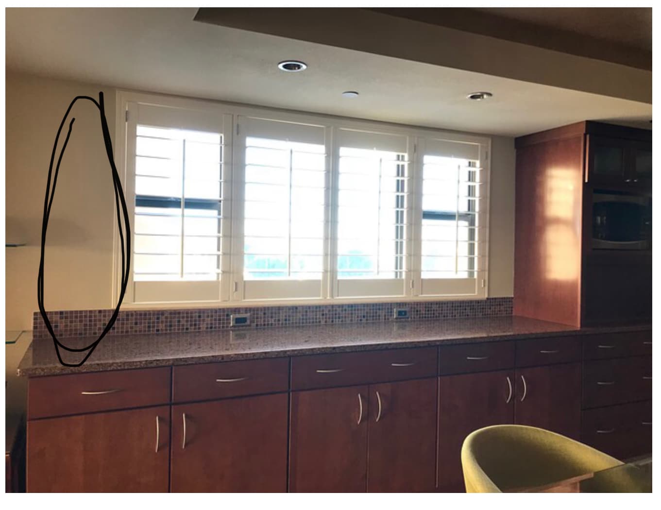 There are two additional shutters in the kitchen side (it’s all open) on the other side of the appliance garage/microwave/cabinets.