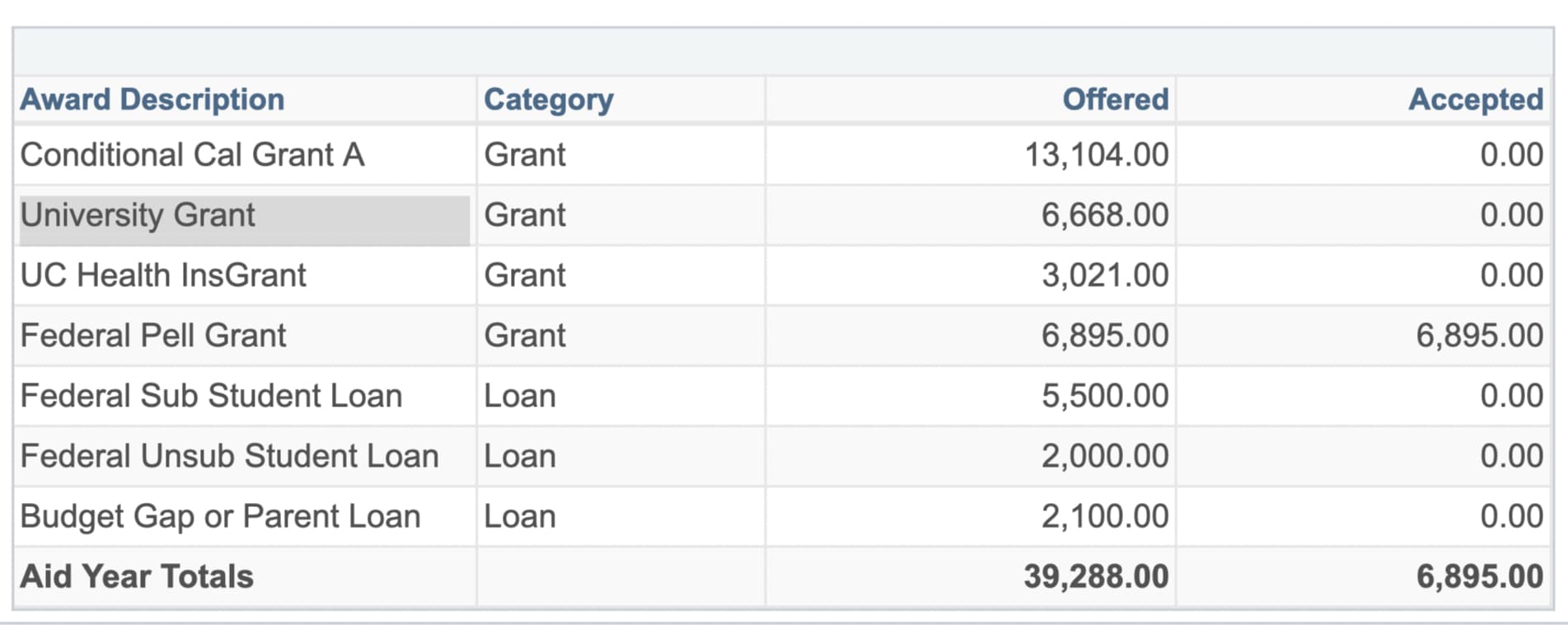 I got admitted as a transfer for fall 2022 and i am having trouble interpreting my financial aid. What is the university grant? And if i qualify for blue and gold will it show up now or later? Thank you
