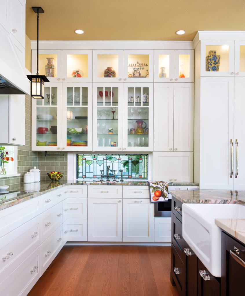Since you mentioned white cabinets, take a look on Houzz for cpartist’s home in SW FL. It was featured in Old House Journal. Arts & Crafts Revival Home I like the green tile backsplash in this kitchen, as well as the gorgeous quartzite.