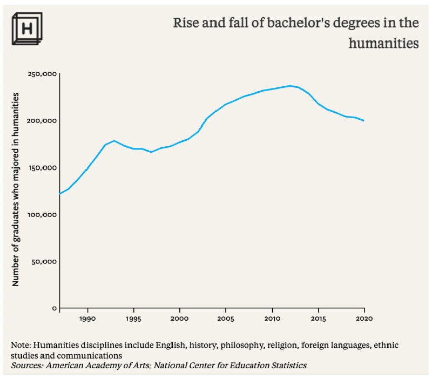 I have read several similar articles. If they are correct, what has changed? Many here on CC value their humanities degrees ( is that the right word?). Has the job market changed? Have the career goals of graduates changed? Have many students assumed that “any” college degree will ge them the money they want?