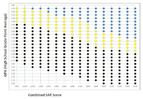 I can’t find it now, but several years ago there was an easy-to-read grid with GPA on one axis and SAT on the other.