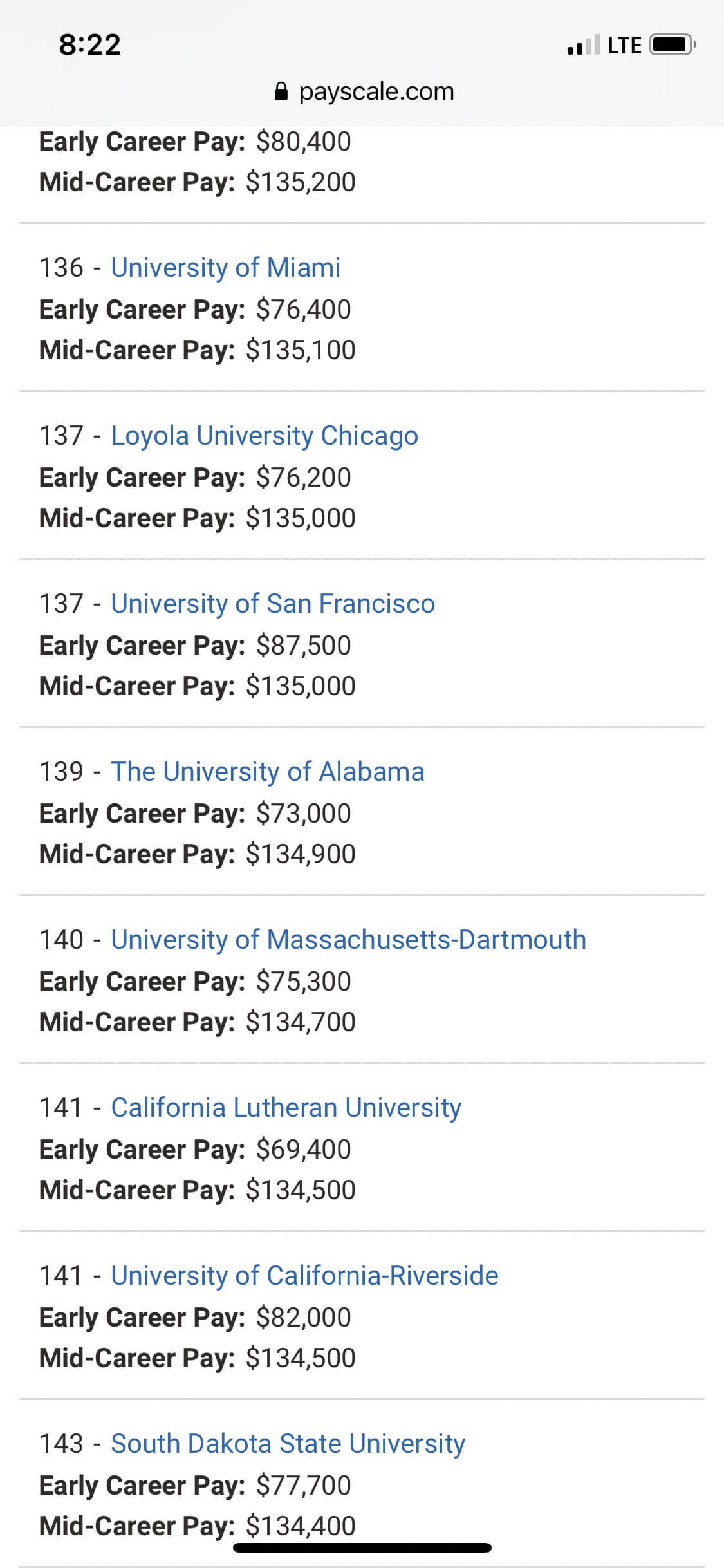 https://collegescorecard.ed.gov/ can be useful in checking early pay levels by major at colleges where enough students who received federal financial aid graduated in the major recently.