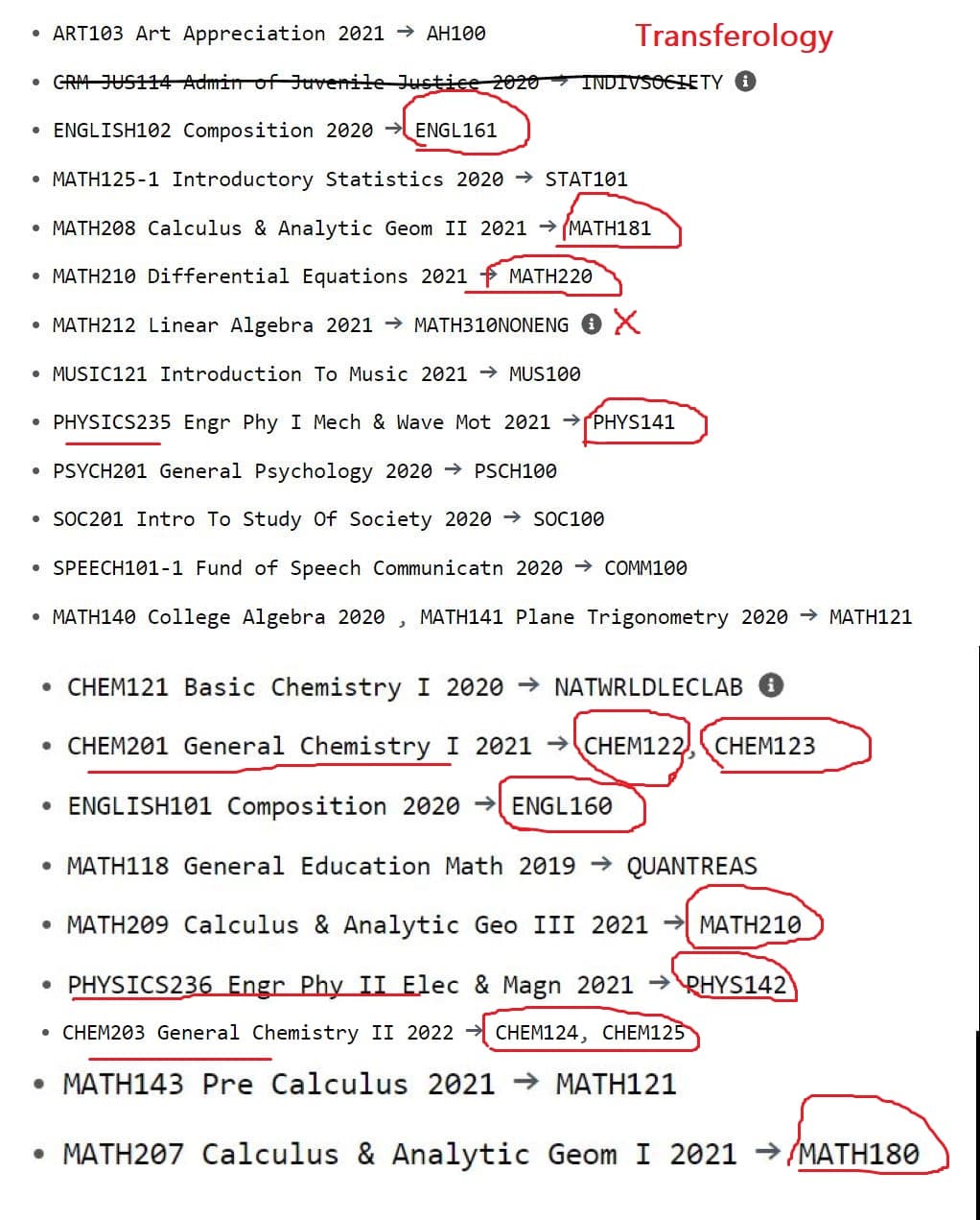 None of us need to prove anything to you. Because there are people who earn a living evaluating transcripts and TELLING prospective students exactly which courses will transfer and which ones wonât. And several posters have BEGGED you to set up a meeting with one of these transfer counselors and get the exact data on where you stand as a prospective student.