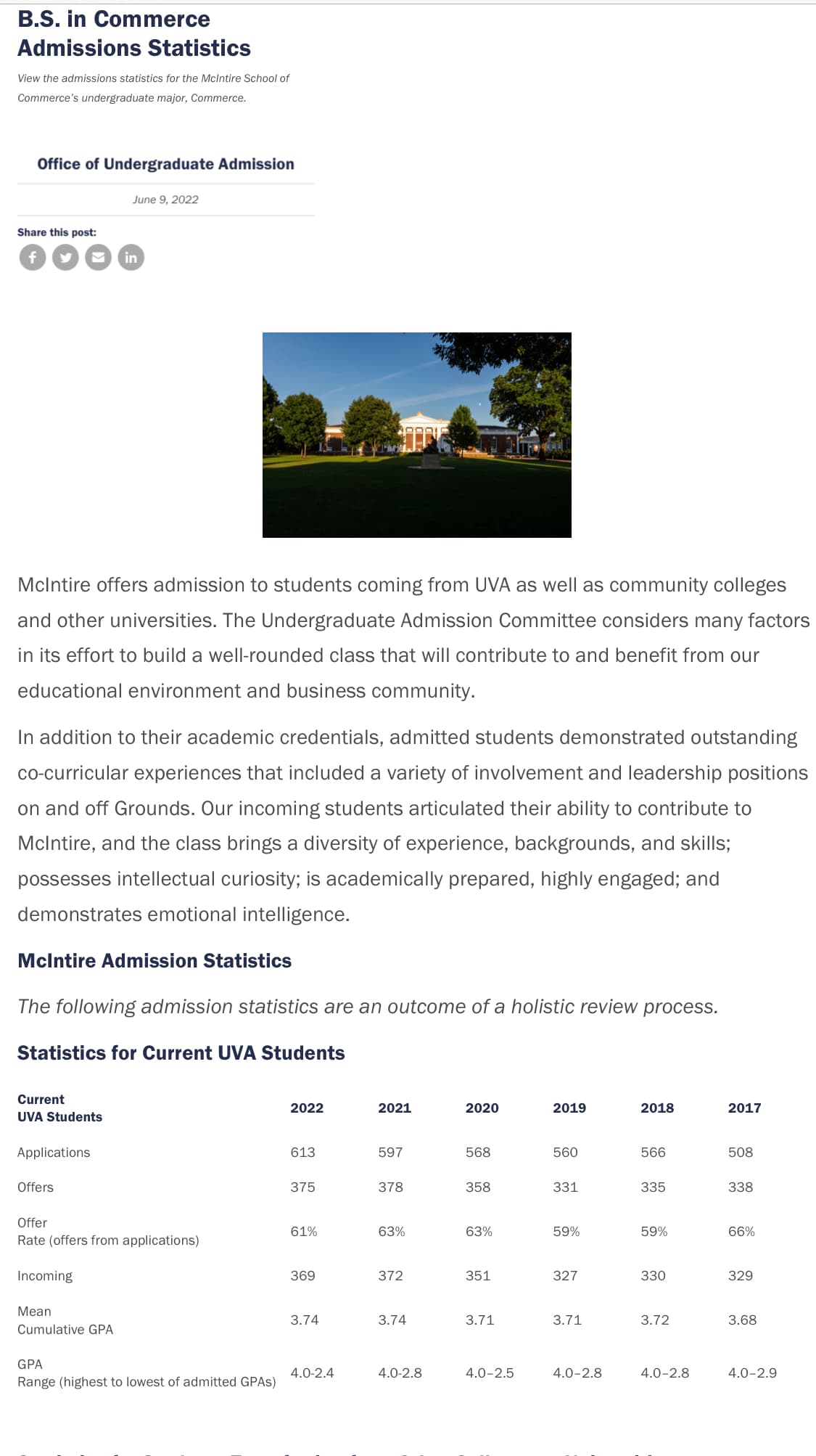 Is it transparent? I understand McIntire admissions are holistic. Several students with stellar grades have been rejected to their surprise. Students likely overestimated the importance of grades in their application but the school should be clear as to what role if any those play.