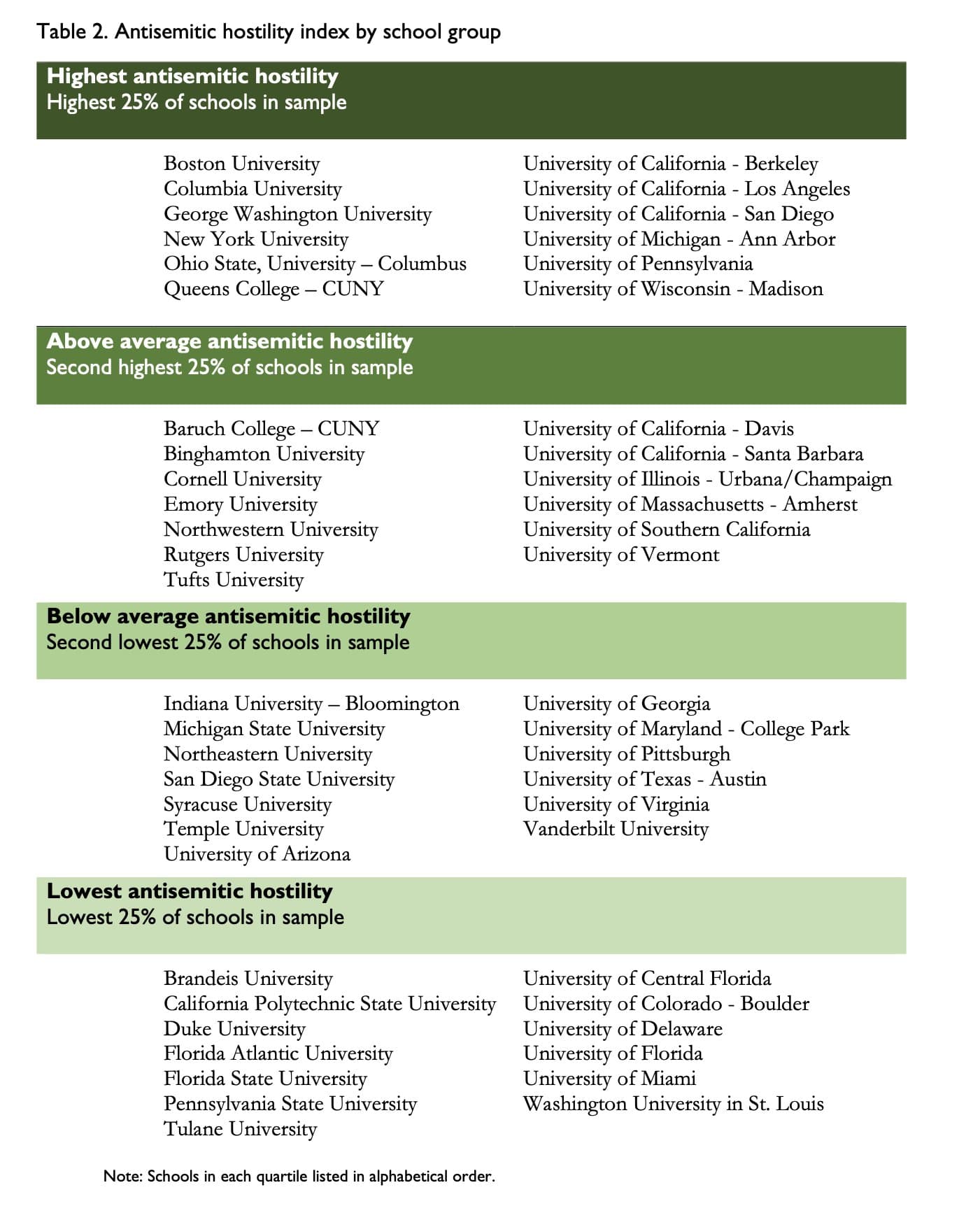 Brandeis did a study that came out this week about antisemitism on campus. They published this “antisemitic hostility index” that groups schools by level of hostility - which I think is interesting. Some of the schools you are interested are represented here.