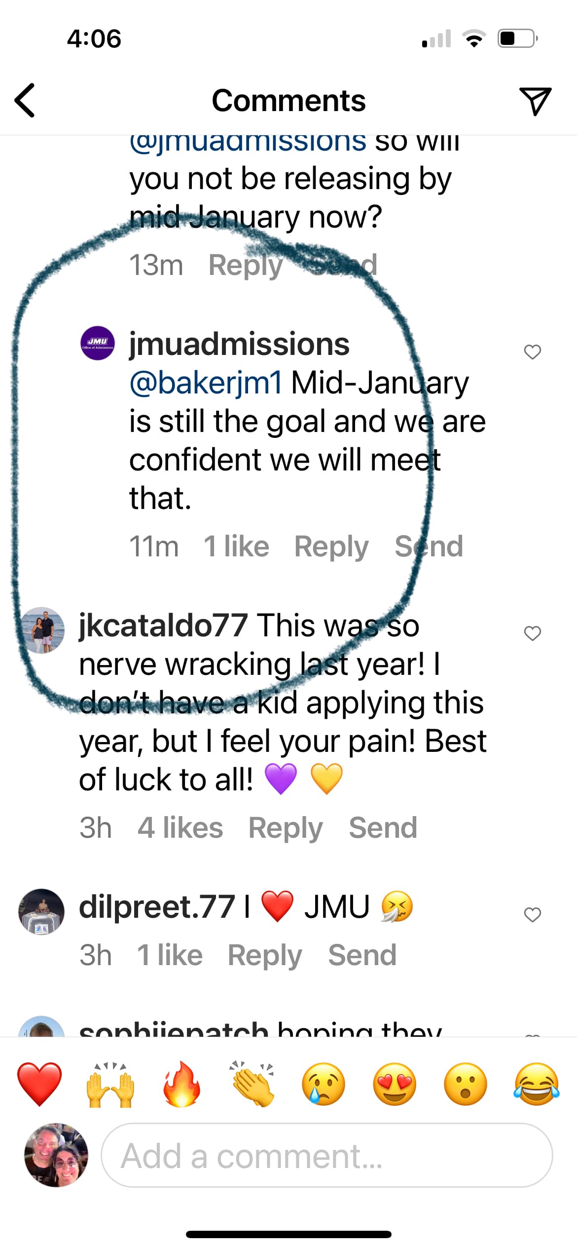Last couple of years they released decisions on the 12th or 13th. My son plays soccer at a high level-but has decided not to play in college-received an email yesterday from one of the JMU coaches. It was just a general invite for an ID camp. But he is not on their recruiting lists, so hoping itās good news? I am sure I am reading too much into it. Best of luck to the kids!!!