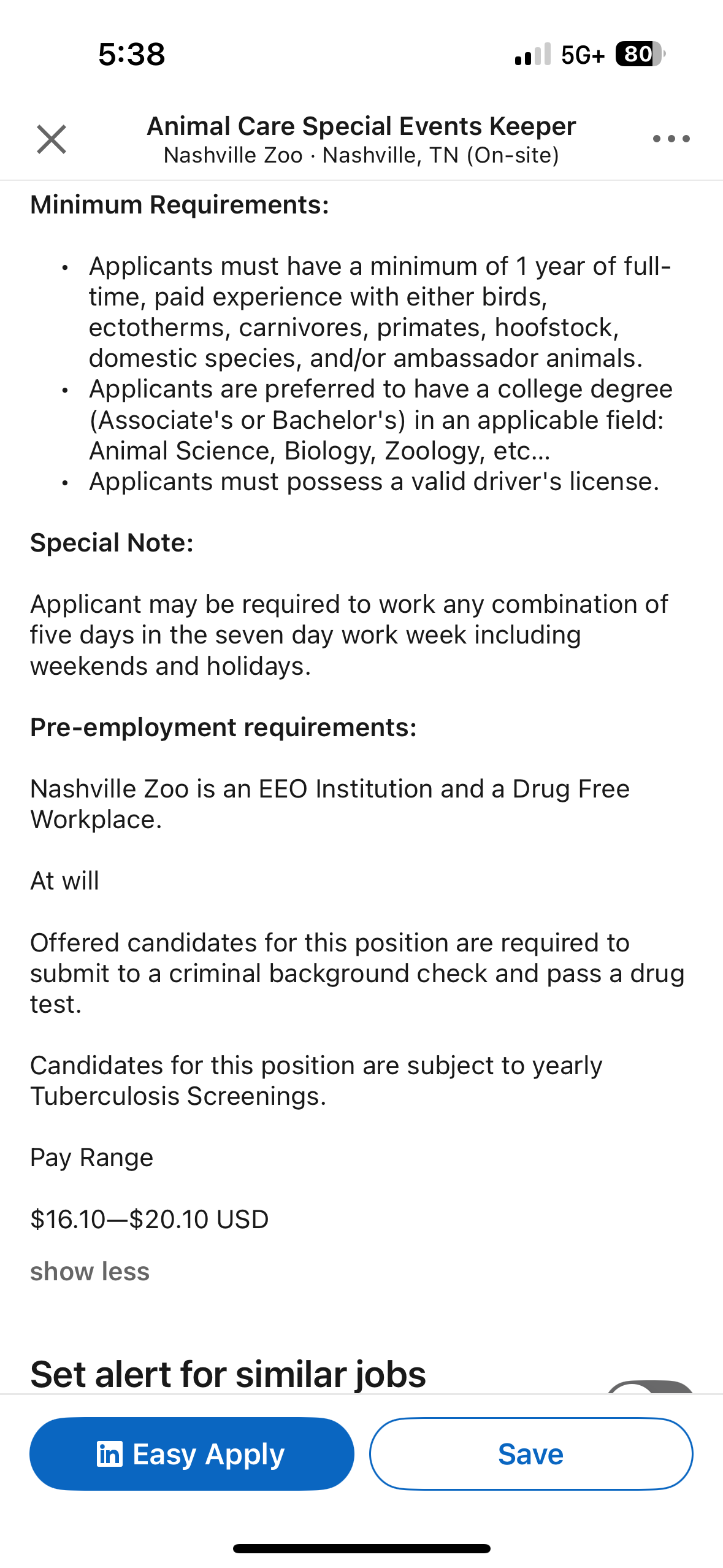 Nashville’s zoo has a bunch of openings. They say similar in several I checked: