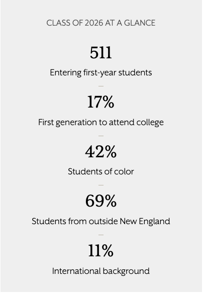 In the span of about 3 mins, I came across 2 graphics detailing the Class of '26. Beyond the details, they are interesting because they highlight what the schools are proud of, focused on, and maybe by comparison…avoiding.