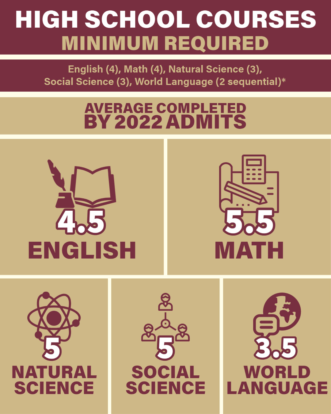 The ranges below reflect the Middle 50% of students admitted to the University of Florida in 2022. It’s important to understand that these are NOT minimum criteria, nor does falling within these ranges guarantee that a student will be admitted. UF considers all aspects of a student’s application, background and qualifications when making admissions decisions.
