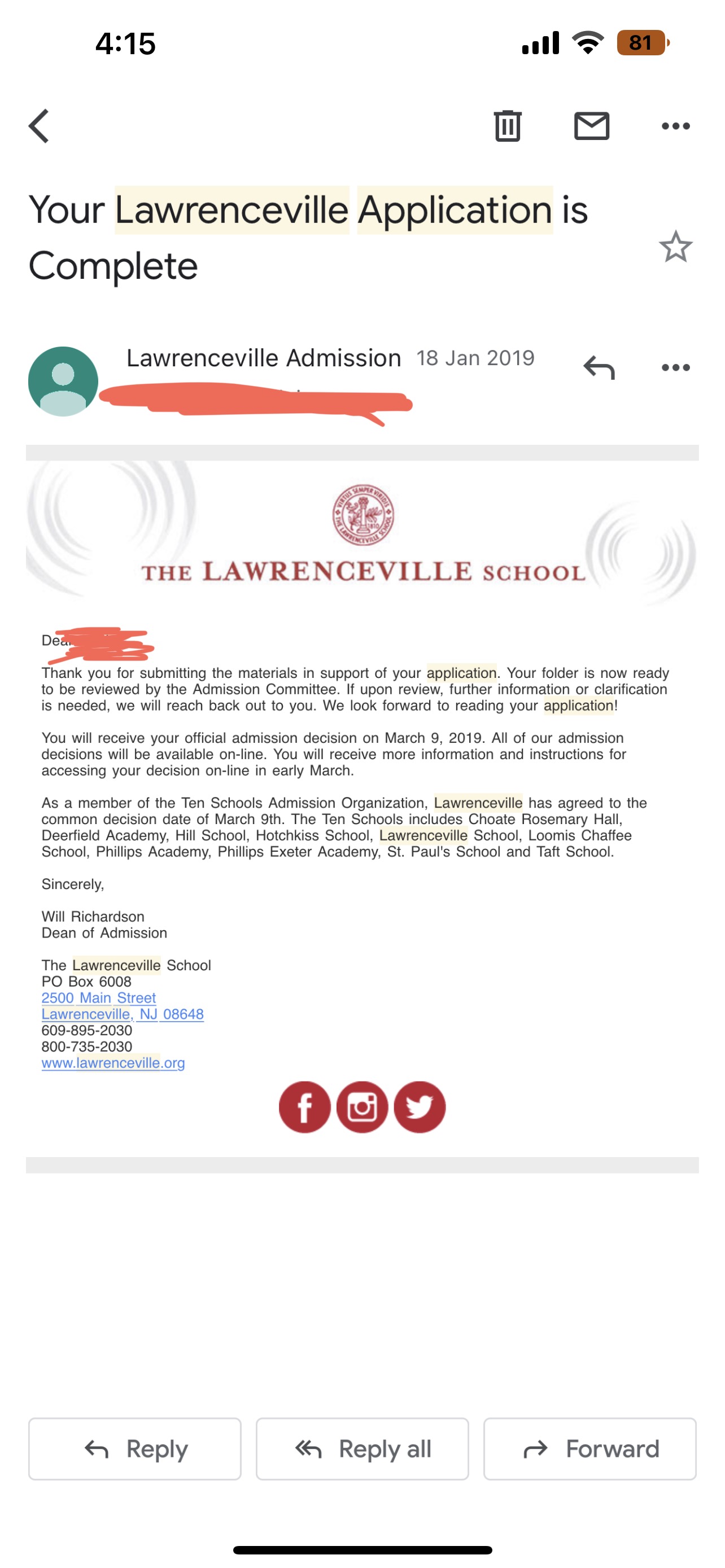 @Pharmingturtles I dont know if you realize this but you say “no one here can give you that answer” for almost any reply. And also replying to this thread I dont think you need to email them, my Lawrenceville interview took a while to check off.