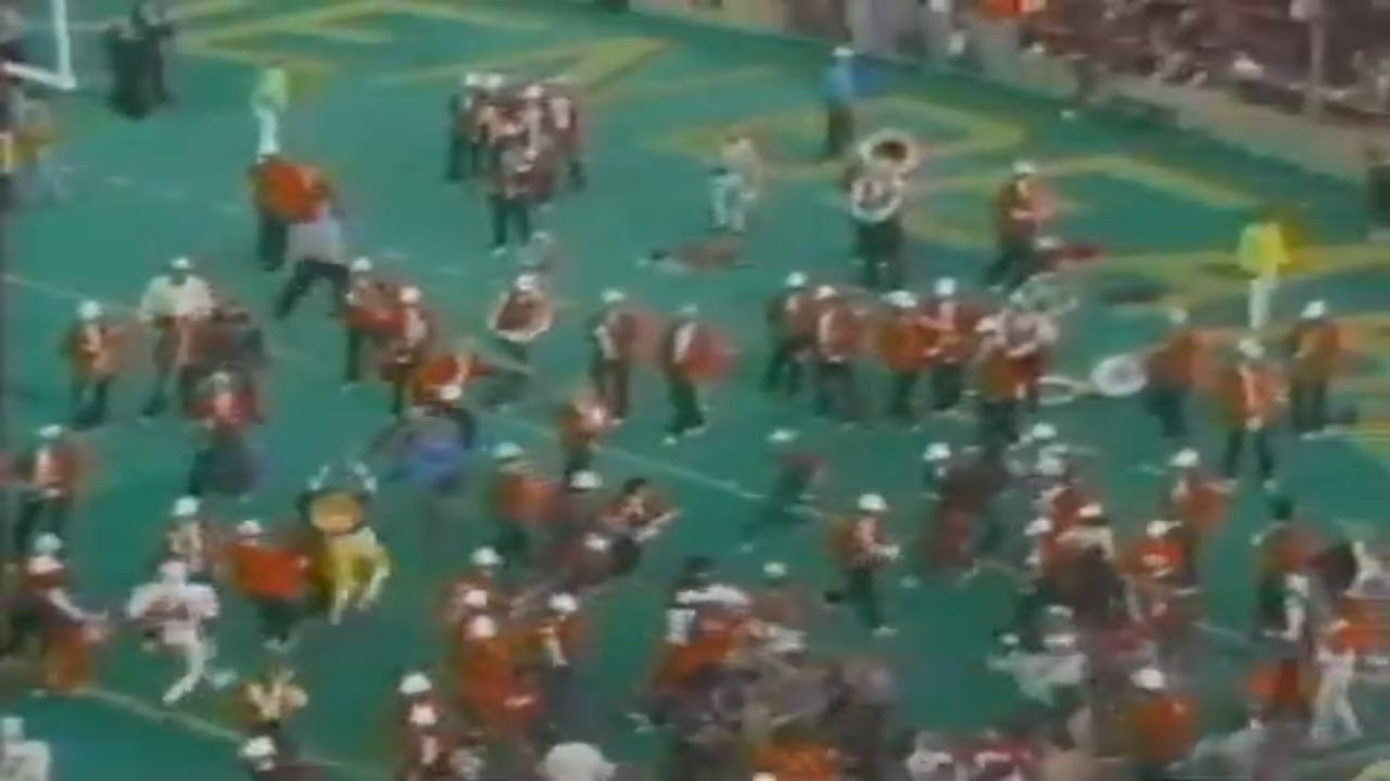 I had a tee shirt which diagramed The Play, including a sideways musical note in the end zone.