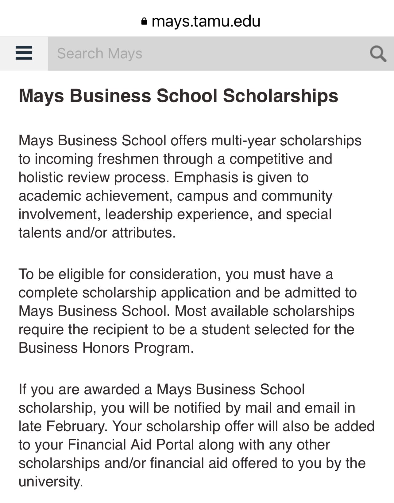 I do think most (maybe all-not sure?) BHers get some kind of Mays scholarship, like $1k for 4 years. Definitely won’t be huge scholarships.