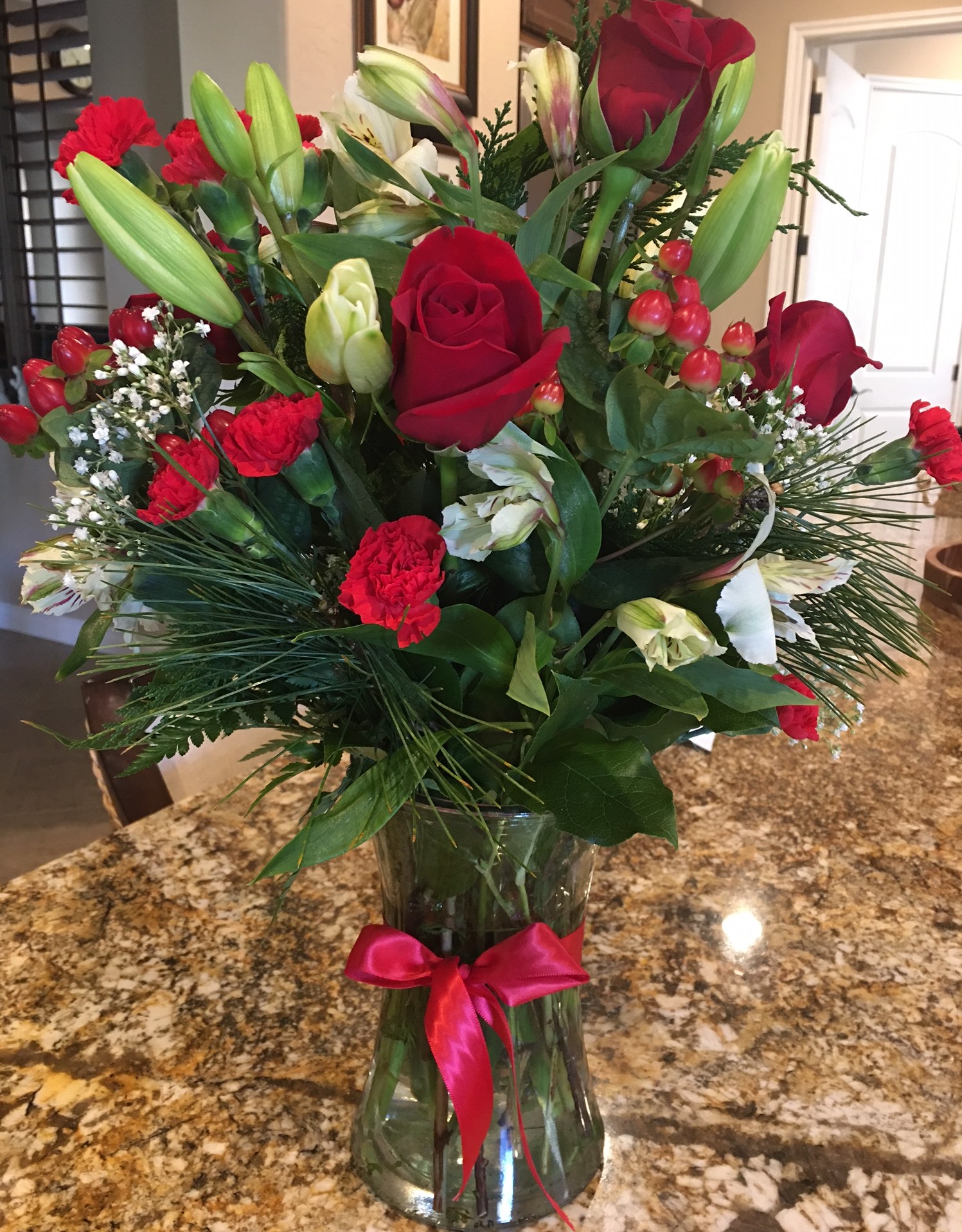 And in other news (and having fun testing photo uploads), ChoatieLT sent me flowers this morning with a sweet note reminding me that although we can’t be together for Christmas, he’s always only a phone call away. Sometimes that kid’s a keeper.